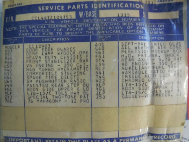 1977 Chevrolet CheyenneThisis a solid truck that runs strong and drives well. The finish is original inappearance and shows some wear, (see photos). The interior is in decentcondition. This truck is rust-free with the exception of some small dime-sizedsurface bubbles, (see photos). This is a great truck for everyday use or agreat candidate for an easy restoration. The truck features: · 350 V8 with a 4 barrel carb· Automatic Transmission· 89,700 Miles· Full Instrumentation· Runs great, drives great and handles well,still tight· AC, (R-12 and needs a charge), Power Steering,Power Brakes· Dual Fuel tanks· Decent interior· New Stainless Rims with new BF Goodrich LongTrail TA Radials· New Tonneau bed cover· Has headers. New exhaust system from headers onback with Flowmasters· Truck was used to move a small private planeand hanger stored for many years. Please do not bid if you donot have any feedbackIf youbid, please know that you are committing to buy the vehicle. Please note thatthe winning bid is binding and final. This vehicle is being sold as-is,where-is with no warranty expressed, written or implied. Shipping is theresponsibility of the buyer. Any descriptions or representations are foridentification purposes only and are not to be construed as a warranty of anytype. It is the responsibility of the buyer to have thoroughly inspected thevehicle and to have satisfied himself\herself as to the condition and value andto bid based upon that judgment. I have tried to represent it as accurately aspossible, to disclose any known defects associated with this vehicle. Sellerassumes no responsibility for any repairs. I do not warranty anything that mayor could happen after sale. Any inspections are to be completed before the endof sale, not afterward. Winning this auction does not entitle you to comeinspect the vehicle and decide if you want to buy it, but obligates you tocomplete the purchase. Thank you.