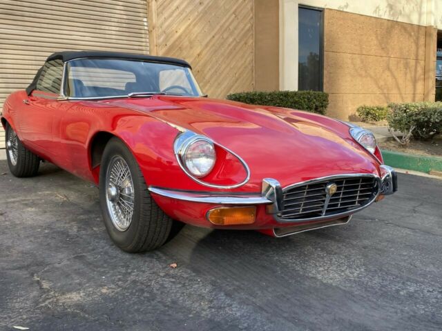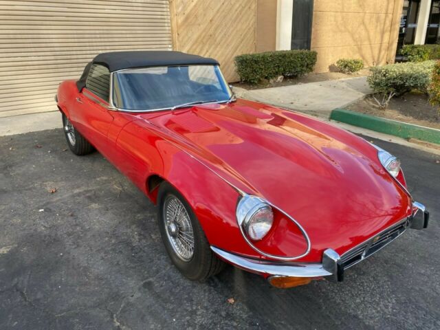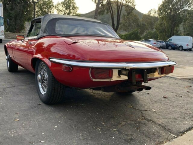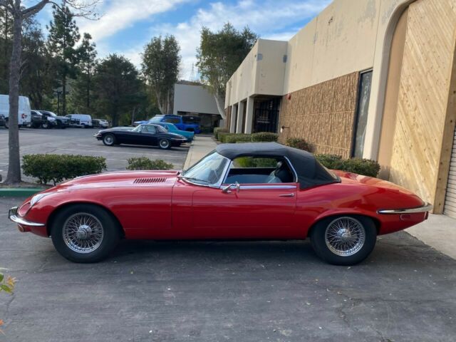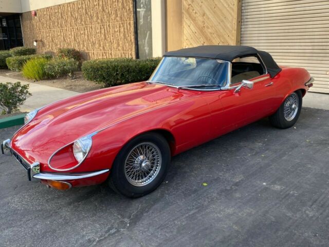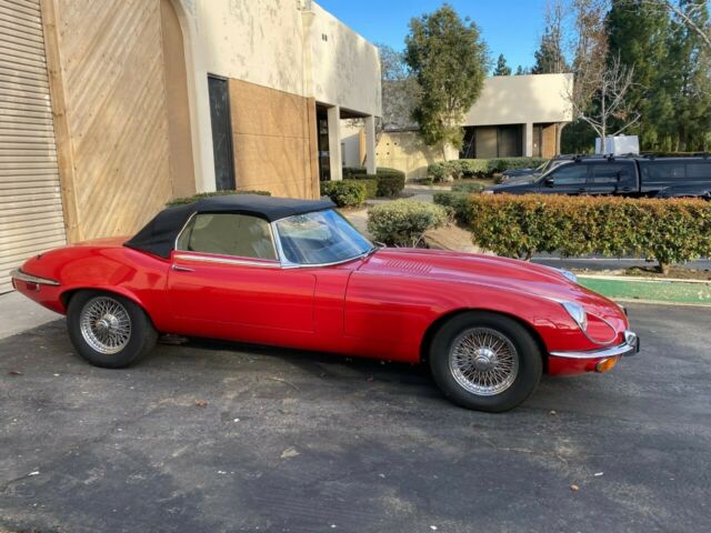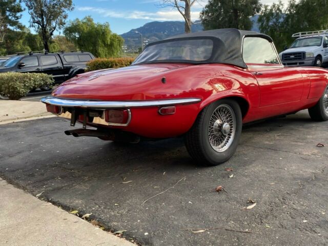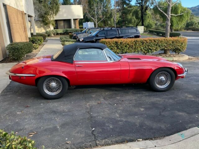 FOR RESTORATION, MOST WORK COMPLETEThis 1972 Jaguar XKE Series III Roadster is a 4-speed manual example finished in beautiful Signal Red over a black leather interior. It features optional chrome wire rims, stock AC and power steering. Engine and transmission are completely stock as is the interior which is in very nice original condition. The E-type now being offered was originally a LHD 2+2 converted to a Roadster. Conversion is clean and professional. The car is running and driving although the car will require a full going through before use on the open road. The engine is nice and quiet and has good oil pressure, it starts quickly and idles smoothly. A full tune-up would further benefit the car.This E-type V-12 is offered as a running driving restoration project (mostly complete), therefore it does have some bodywork that will need addressing at some point. This Jag may be driven and enjoyed while restoration work is finished. While structurally sound, it will require a pair of radius arms (rear) before high use. Both driver and passenger floors have been replaced as have several other panels in and around fire wall and transmission tunnel. Many other repairs and replacements have been completed, many new parts purchased and installed. The car is currently at Sports Car Classics in Newbury Park, CA. Harry Fulford, SCS Proprietor, has had this car for over a year and has done extensive work on it. Harry is a recognized Jaguar specialist and E-type restoration expert. Owner is stretched too thin over several other projects and has elected to allocate scarce resources to other restorations.This beautiful Series 3 V-12 represents an excellent opportunity to get into a timeless classic that can be restored whilst being enjoyed at a reasonable price. Review the photos carefully for detail.The Jag is located in Southern California. Please contact SCS for further information. Call Harry Fulford on 805-454-9008 or 805-267-6795 with any questions, he will provide a clear and accurate assessment of work performed to date and required steps to finalize restoration . Potential buyers encouraged to see this lovely V-12 prior to bidding. Buyer responsible for transport, SCS will assist in arrangements.