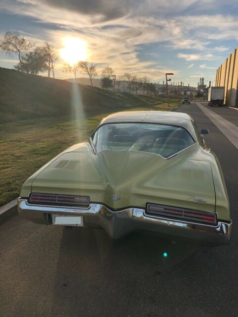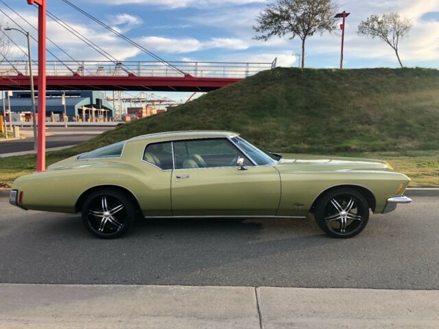 The 1971 Riviera features a curved rear window that wraps around the tapered body. Dramatic flat haunches extend out from the pyramid-shaped hull to cut a tapered and powerful line. Louvers on either side of the hull add an aesthetic edge that disappeared after the 1971 model year.To compliment the angles and curves of Bill Mitchell's design, this car is painted in Green Gold Metallic. It shines like glass. The interior is impeccably fitted in supple leather and exotic ostrich skin. Attention is paid to every detail...even the deepest corners of the trunk. The 455 Buick V8 Engine has been rebuilt and runs strong. And with all the chrome, the engine bay of this Grand Sport shines bright. A serious head-turner and an absolute pleasure to drive. In recent years, Hagerty Value Ratings for third-generation Rivieras have increased dramatically, reflecting the growing demand for this iconic car. This is an unusual opportunity to acquire this classic at a very reasonable price. This car is validly registered in California. The original owner's manual and extensive service records are included. This car is also being offered locally. NO WARRANTIES EXPRESS OR IMPLIED.Car sold "as is". Contact seller with any questions or to arrange for a pre-purchase inspection. Uploaded videos of the 71 Buick Riviera GS in action! Gotta copy and paste this link.