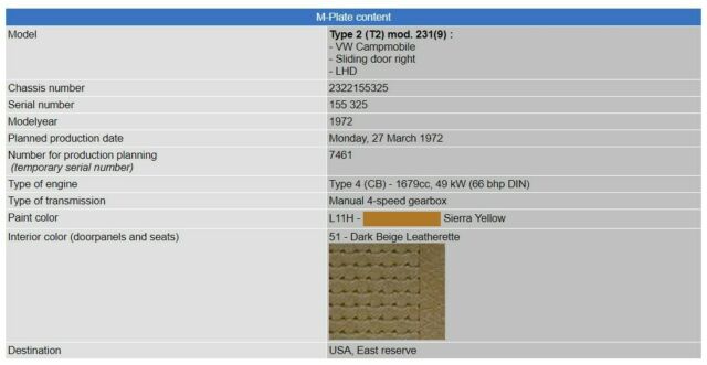I'm selling my 1972 Tin-Top Westfalia Campmobile project. My intention was to restore it with my daughter but priorities have changed and we must let it go. It has sat untouched in my garage since purchasing it from a friend in June 2018. Most of the photos posted here are from our pre-purchase inspection from that time but I can take more upon request.Basically it is a fairly solid rolling shell with the original Campmobile interior including Z-bed. Minimal rust perforation. Brakes do not work but it rolls fine.The original 1.7 Type 4 engine was removed and disassembled and is included along with a complete transmission. I also have a locked-up 2.0 fuel-injected motor from a later Bus that is included.The wiring was removed under the dash and in the engine compartment but I bought a good used '72 front end/dash harness which is also included. The rest of the harness is widely available new and fairly inexpensive.Comes with some spare parts including an extra dash and an extra front bumper and some miscellaneous new brake parts including shoes, hoses and hardware.Clear Kentucky title in my name.