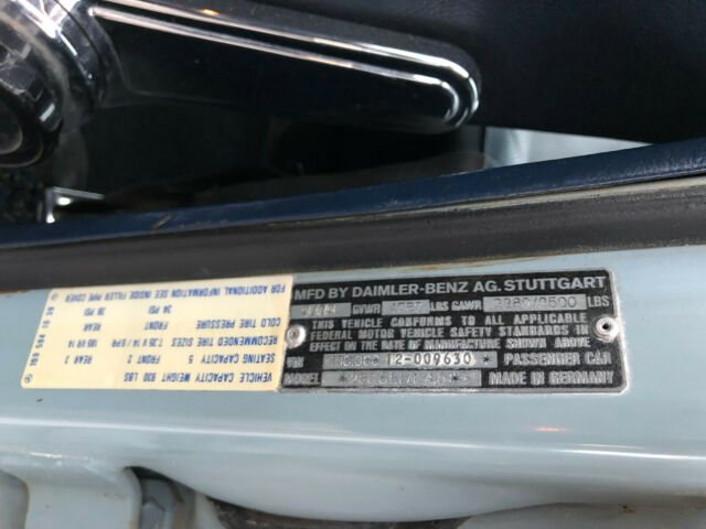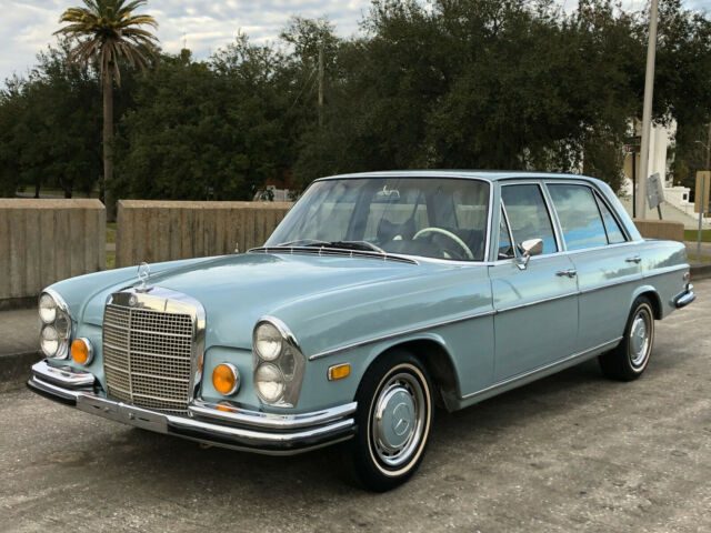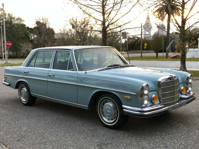 1972 Mercedes-Benz 280SEL 4,5 Sedan (W108) VIN # 108.068-12-009630M117 V8 4,5AUTOMATIC transmission.DB304 Horizon Blue exterior w. blue MB-Tex interior.BECKER Europe AM/FM radio.BEHR air-conditioner. Power steering.Power windows.Power brakes.102690 original miles. Two previous owners.California and Arizona car - original and absolutely rust-free undercarriage.Original DATA-Card matching numbers car. * * *Exterior in first and factory original DB304 Horizon Blue (due to some chips the hood was the only panel that was repainted in 07/2015 - the rest is the original factory color from 1972 that is well preserved and shows unbelievably well ;, left front fender has the area where the paint started getting too thin - it was clear-coated and buffed;, some small but barely noticeable touch-ups on the edges of the doors, some on the roof;).Odorless interior.Carpets are tired and should be replaced. Original wood on the dash as well as around all windows shows well (wood has been amateurishly redone by a violin restorer in September of 2015). All original factory chrome bumpers and aluminum trim show incredibly well.New alternator has been installed in 06/2012.New gas tank and fuel pump in 04/2015.All fluids are fresh, recent tune-up. Original, solid and rust-free undercarriage with original factory undercoating. Original books/manuals, service booklet with stamps, service records, original DATA-Card, jack and original spare tire are included and come with the car.Ready to be driven and enjoyed. * * * This gorgeous Mercedes-Benz is 47 years old and it is ready to be driven and enjoyed for the next 50 years.It is being sold with a clear Arizona Title signed by a previous owner. Due to the age sold as-is. $1000 deposit due immediately (non-refundable), balance within the next 5 days via bank wire transfer, cashiers check or cash. This is a WORLDWIDE SALE!* * *904-909-7860