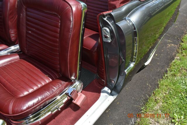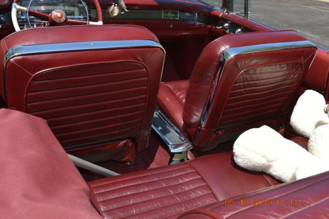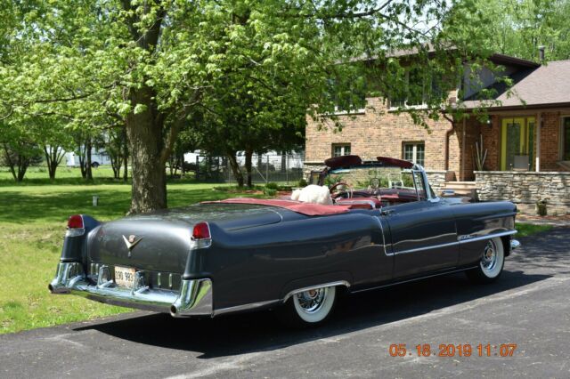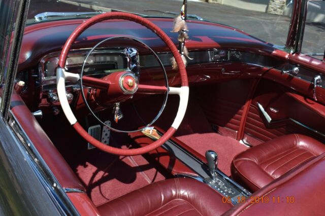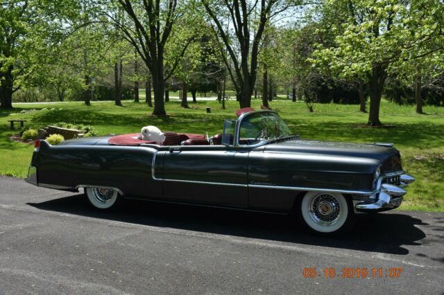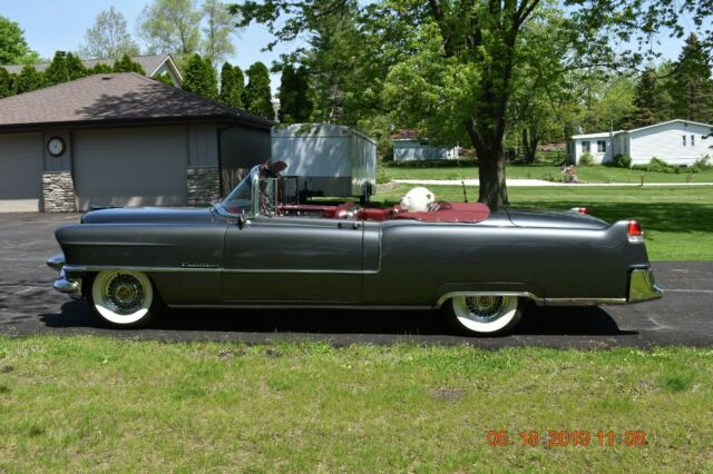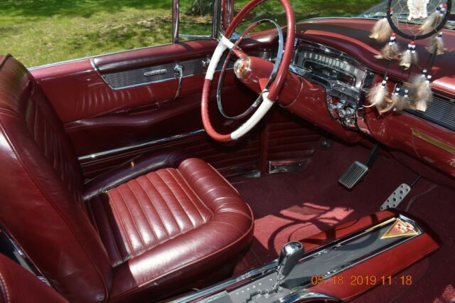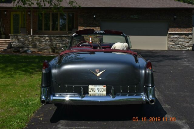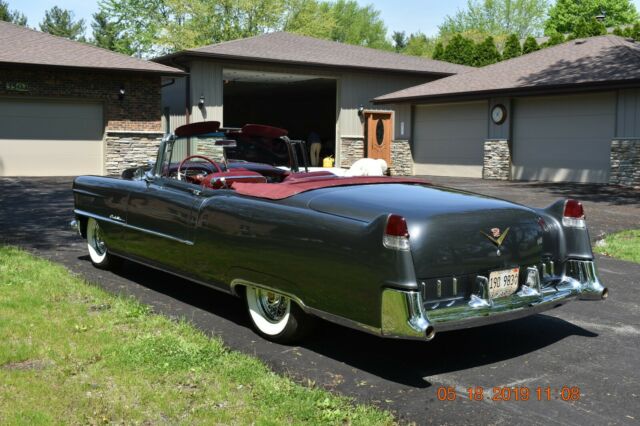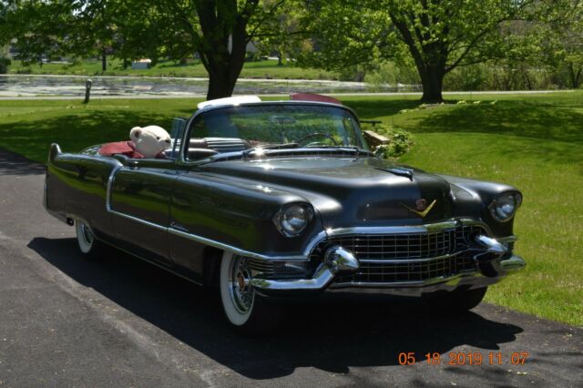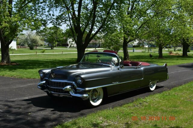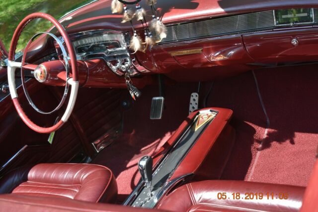 1955 Cadillac model 62 Convertible Resto Mod. The car has a 2006 LS2 with a 4L60E trans. The motor and trans are shockingly powerful. The engine and trans harness is Howell. Flow Master 2 1/2" StainlessSteel Exhaust (exits through factory bumper location). Rack and pinion steering, Wildwood disc brakes up front, drum in back. The car has all new brake lines & fuel lines. It has a Ride Tech Shock Wave Air Ride system which has a Key Fob and Bluetooth. The car has custom tilt wheel, Vintage Air, intermittent wipers, Cadillac A,B,C,D horns, power windows, power brakes, power top & 1964 Cadillac power bucket seats. The center console is from a 1963 Oldsmobile. All wrapped in Blood Red Buffalo Hide. The new top is cloth burgundy. Body color is Mercedes Metallic Charcoal. This Caddie was a three year restoration which included full frame paint and custom made stainless fuel tank with internal pump. All gauges have been rebuilt and calibrated. All the chrome and stainless have been done by Finishing Touch. The grill was completely disassembled, polished and reassembled. This car, if you notice, is radio delete. This is a well built custom that can be driven anywhere & anytime. Of course, it's never seen weather. Approximately 60 miles since restoration. The engine and transmission had 53,000 miles prior to transplant. The car has also been completely Lizard Skin spray sound deadener followed by Eastwood sound deadener and heat shield. The car is incredibly quiet and rattle free. I'm quite confident, this is the first LS 55 Caddie. The best materials available were used for this Resto Mod. This car also has never been shown. Everything works as it should. The final tune was done by Speed Inc in Illinois. I will help in anyway with your shipping but the cost,of course, is on you.Thanks for looking. 219-242-8389