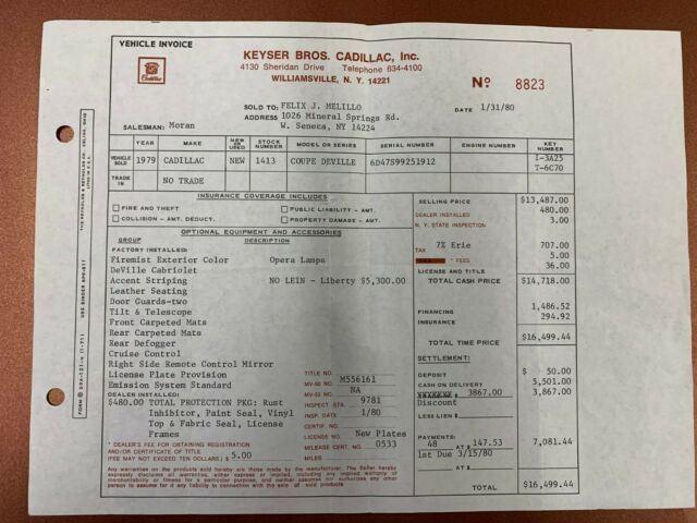 This is my 1979 Cadillac Coupe Deville. This is a 3 owner car, Iâm the third owner. It was purchased brand new January 31st of 1980. It was purchased out of Keyser Cadillac a local car dealership since 1959. The car is in excellent condition. It is mechanically solid with 49,100 original miles. The exterior and interior of the vehicle have been remarkably taken care of as well. The chrome on the car is show quality. Everything is functional on the car except for the heat and AC unit along with the trip odometer. The car shows great for its age. Itâs virtually flawless. The undercarriage of the car is rock solid and was always under coated. This is a true Cadillac with a 7.0L V8 425CUI engine, throwing out 180HP with a top speed of 115 MPH. This car was well a head of itâs time. It listed for $13,487.00 back in 1979. Please feel free to reach out to me if I can answer any questions for you about this car. This vehicle DOES NOT COME WITH A WARRANTY! The vehicle is sold as is. The car is a head turner and a great car that can definitely win local car show awards. I'm selling the car as honestly as possible if you require any addition photos of the car or a video of it running please let me know I'd be happy to provide it to you. I'm very experienced with using eBay, please don't bid on the car unless you have intentions of purchasing it. Have a great day.