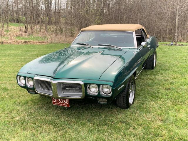 1969 Pontiac Firebird - Convertible Location: Chesterfield, MIVIN: 223679N104***Motor: 400 CI Automatic V8Transmission: 350 Turbo TransmissionExterior Color: Deep Emerald Green Metal FlakeInterior: Stock Firebird Dark GreenTitle: ClearMileage: 41,575Description: Very nice 1969 Convertible Pontiac Firebird. It has a 400 cubic inch Pontiac engine (casting #0777535 / YE code) with mild modifications (mild cam). The car was originally built as a 350. The car has an automatic 350 Turbo Transmission and 10 bolt rear-end. Chrome air filter and Edelbrock chrome valve covers. Edelbrock Performer RPM intake, with a Holley 4-barrel carburetor with manual choke. Headers and dual exhaust. MSD 6 amp HEI high energy ignition system. Power steering. 4-wheel drum brakes. Rear air shocks. American Racing Wheels (rear 15-8, front 15-7). Rear tires are 235-60R15 and the fronts are 205-60R15. Spare tire with original Pontiac rim. Beautiful, straight, rust-free body.Deep Emerald Green Metal Flake exterior, beige convertible top, dark green interior with original vinyl bucket seats (carpet is dark green - camera makes it show slightly brown, but it's not). Front and rear lap belts. Factory dash with original AM/FM radio.This Firebird has the following brand-new parts: - Convertible top - Floor carpet - Front and rear brake lines - Front and rear fuel lines & fuel filter - Detent cable and bracket - Gas tank - Battery - Alternator - High flow water pump - Thermostat - Hoses - Belts - Gaskets - Rear tires - and many more... - Plus a freshly rebuilt transmission.This car runs and drives great and is ready to hit the road.Asking $23,500 NO TRADESFor information and questions, call Chuck (586) 873-5773This item is also posted on other sites.