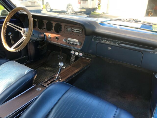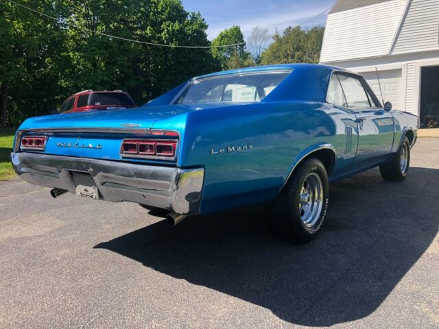 Up for sale here is my 1967 Pontiac Le Mans (GTO Clone) It is a fun muscle car to drive. It looks and sounds good going down the road. Hereâs what itâs got for a drive train: ï§ It has a 1974 400 Pontiac motor in it with big-valve heads. ï§ Aluminum Edelbrock intake and carb ï§ Headers, new true dual stainless steel exhaust ï§ Turbo 350 automatic transmission HEI distributor Other features include: -Aftermarket 4 core aluminum radiator -Complete new suspension on all four corners -Brand new 4 wheel disc brake conversion with parking brake, lines, booster, and master cylinder all new -Tilt steering -Aftermarket B&M shifter -Sunpro triple gauges -The interior is in good condition -Recent metallic blue paint buffs up very nice A few minor things that need attention: -new window crank handles -a couple of window weather strips - a wiper motor -reverse lights -headliner is starting to sag at the rear pillars -pass side window needs to be reattached to track -one wheel stud (driver rear) -center console needs to be secured (it is just sitting in place now) -this was not a frame off restoration as far as I know, it appears to be more of an exterior make over -there are some small areas of rust a (around the trunk lip and very minimal in the door jams -see photos) -also minor paint bubbling inside rear pillars (see photos) (for instance the inside the trunk does not appear to be sanded and painted and could use some attention) -the radio is era correct but does not work Recent work I have just had done includes: ï New 650 Edlebrock carb w/ electric choke ï New HEI distributor w/ MSD wires ï New rear shocks ï Entire car completely re-wired ï LED lights installed in dash gauges ï LED dome light New ignition switch New weld style racing rims Brand new BF Goodrich white lettered tires all around GTO grill with new turn signal lights in grill New 12v outlet The car is a great driver. Itâs powerful and sounds good. It is not going to take home first place in any car shows, but it is a real head turner, and gets a ton of compliments. I do not want to sell it but I am self-employed and due to this COVID situation I am forced to. With a little love and attention you could easily double the value of this car. There are not too many of these left. Please see the photos and feel free to message me with any questions or further photo requests. I can also offer to deliver the vehicle to you for 0.50 cents per mile. (I am offering to deliver the Le Mans to eliminate any skepticism that a potential buyer would have as to the reliability and dependability of this 53 year old beauty).