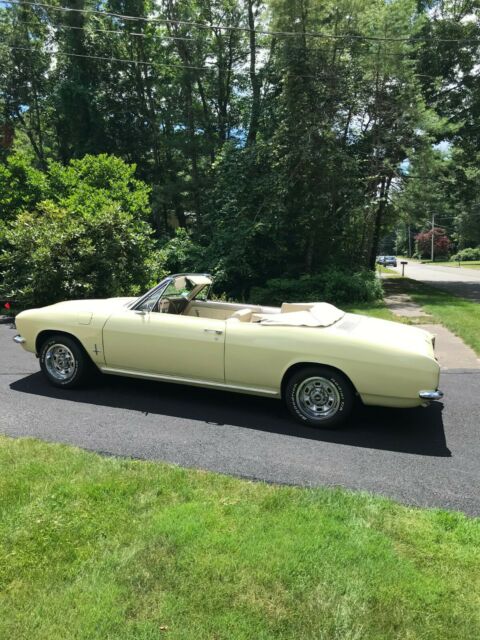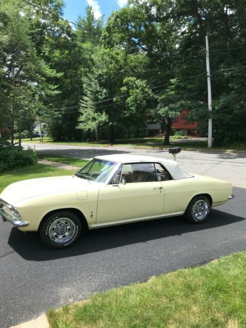 1966 Chevy Monza Convertible, 140 HP , 4-speed manual on the floor, 4 "new" rebuilt Clarks carburetors ,new motor mounts, front stabilizer bar , 4 new shocks and springs, Kenwood AM/FM, CD , Bluetooth stereo with hands free phone conn,stereo is mounted under dash, has 4 new BF Goodrich TA tires mounted on upgraded 14" chevy rally wheels, new custom dual exhaust, power antenna. The car has over $7,000 in upgrades and maintenance over the last 6 years of my ownership. The Lemonwood Yellow paint shows very nice. I have all maintenance records for the past 6 years. The car has current Mass safety inspection sticker from June 2020. Over all the car is in nice shape, always garaged, never driven in New England snow. The car's interior is original and in good condition. The two front seats will need to be refurbished eventually, better coils and firmed up. The convertible top boot has one of the snaps missing, clock only has the correct time twice a day {haha} , windshield washer does not work {wipers are fine} , the gas gauge / level indicator in gas tank is something I would have to explain to interested person's. I'm only selling the car because I have decided to downsize. Great looking car that runs and drives nice. I would be happy to send more pictures to any interested persons. If you would like to speak to me on the phone please put your phone number on your inquiry, I would be happy to answer all other questions.