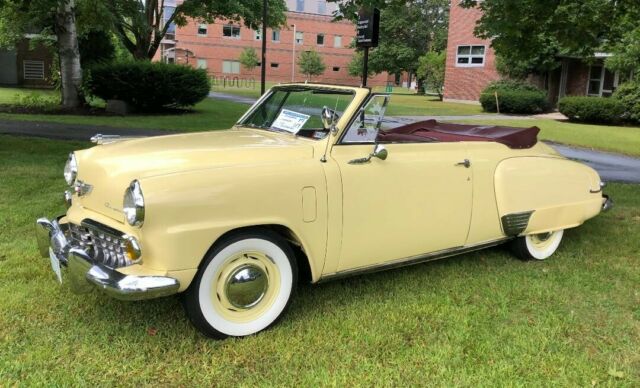 California car with the last two owners maintaining it garaged for the last 15 years or so in Michigan and New Hampshire. No winter driving with salt roads.This model is extraordinarily well presented and is a great daily driving example of the post WWII convertible, Taking this car to a cruise night or car show will almost guarantee you would have the only Studebaker droptop! All stock, with solid body, frame and floors, it would make a great addition to your car collection.Be prepared for lots of smiles and stories from onlookers and strangers who remember when they had one or their parents or grandparents owned one.Please take the time to check out the photos for the correct details of this stock 1949 convertible. A summary of improvements are as follows:-Original engine previously rebuilt; 2779 cc | 169.6 cu in. | 2.8 L; 80 HP (58.88 KW) @ 4000 RPM. Three on the tree shifts seamlessly with Over Drive - vehicle drives very well and overdrive allows the car to easily be driven at 60 MPH. Smoke free exhaust.-Front kingpins and steering suspension rebuilt.-New stainless brake lines, master and wheel cylinders, brake shoes.-Fuel tank removed, cleaned, sealed and reinstalled with new fuel tank sending unit and new fuel pump.-Rebuilt carburetor with automatic choke.-Studebaker paint code - restoration several years ago and still looks like new with a few blemishes if examined closely - notice the rear fender body parts were individually painted and then assembled with the fender welting like new - welting never been painted just as it would have at the factory - compare to quick, inexpensive repaints.-Convertible top is heavy duty canvas and a special order with a rear cutout opening sized just for the two piece glass rear window. Operated easily manually. Boot matches interior.-One piece curved glass windshield was an industry leader for this era.-Period correct aftermarket rear fender skirts mount and remove easily with rear handle brace without marking the fender paint.-Studebaker NOS amber fog lights with chrome plated brackets and model correct control switch on dash.-Floorboards and trunk are solid.-Original radio restored.-Chrome bumpers and accessories are in excellent condition.There are a few items which could use a little TLC and this is typically true for any driver quality car of this era. Rear seat has a tear and needs to be patched from the inside and rear passenger glass has a 1 inch crack at bottom corner. Clock doesn't work.Clear New Hampshire Title.Please EMail if you have questions.CHECK OUT THESE VIDEOS - copy and paste in new window to see themInterior Check and Drive: https://youtu.be/0JkiJ6Jr3nMWalk Around: https://youtu.be/GDGCwNEF4mIEngine Bay: https://www.youtube.com/watch?v=L89JrJxrc8IUnderneath floors and frame 1: https://www.youtube.com/watch?v=7Zy6Nl-c4HgUnderneath floors and frame 2: https://www.youtube.com/watch?v=Wa_3ERSvNBA