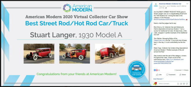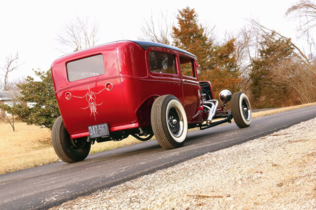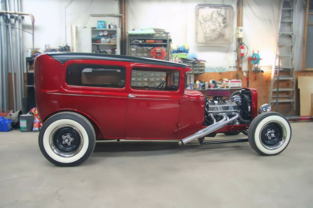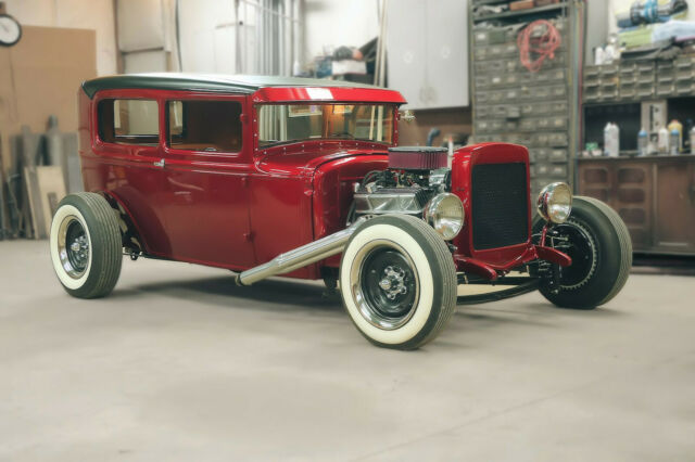 1930 Ford Model A Tudor sedan. ALL HENRY FORD STEEL Body....roof chopped 3". The top has a 2'x3.5' framed out opening with removable vinyl style roof section. Custom frame from firewall back, original boxed front frame rails. Paint... Tri-coat 2013 Dodge Viper color called Stryker Red. Pinstripes by Knuckelhed Custom Art of St. Louis, Mo. Engine.... brand new 350 gm crate motor. New Edlebrock carburetor and intake, electronic ignition. Transmission.... GM TH350, all rebuilt with new converter. Driveline....new driveshaft, fresh GM 12 bolt rear end. New Chris Alston Chassisworks adjustable Coil-over shocks. Steering.... New Vega steering box, new Ididit tilt column with a new 1940 steering wheel. New Speedway front axle assy. Brakes....Front is Buick 12" finned aluminum drums with all new shoes and hardware, rear is original GM brakes with all new shoes and hardware, new master cylinder and all Copper-Nickel brake lines and stainless steel brake hoses. Exhaust....Custom made ceramic coated headers with Super-Trap baffles. Tires and Wheels....1961 Buick powder coated wheels with new Coker Wide Whitewall tires. Gauges....New Autometer gauge set with programmable speedometer. Glass....All new gray tinted safety glass (except windshield) with new regulators and handles. Fuel delivery....17 Gal. fuel cell with new performance mechanical fuel pump. Headlights....Original 1930 Ford stainless buckets with Vintique Halogen headlight conversion and built-in turn signals. Interior....Original Model A Coupe seat modified to fit, has sliding seat mounts. Custom upholstery by Auto Designs By Sebastian in Waterloo, Ill. I have folders full of almost every receipt for parts and services used to build this project dating back to 2008 when this project was started. I have a ring binder with all the instruction manuals that came with all the major parts, including the engine, steering, suspension, wiring, fuel, carburetor, etc.... Has real Ford title! The car recently won Best Street Rod in the American Modern 2020 Virtual Collector Car Show. Copy and paste the link below. https://www.facebook.com/AmericanModernCollectorCar/photos/rpp.420542598008020/3461345020594414/?type=3&theater