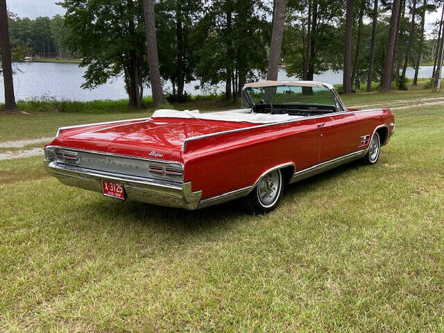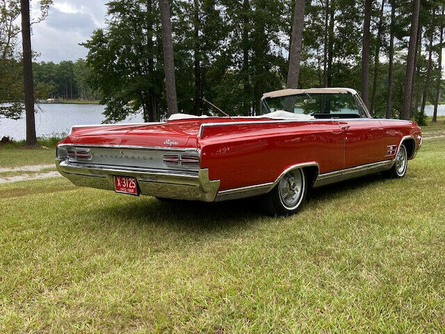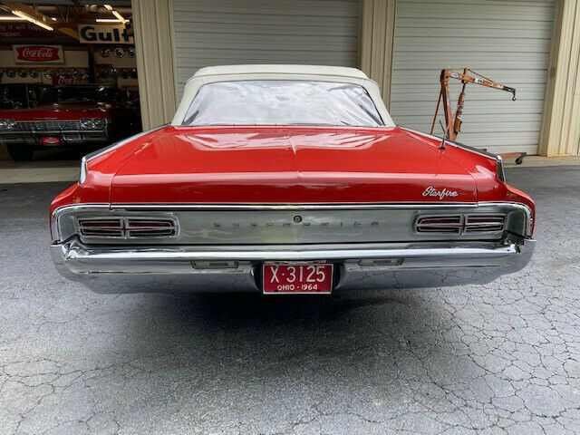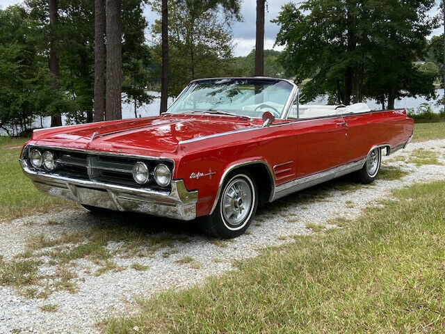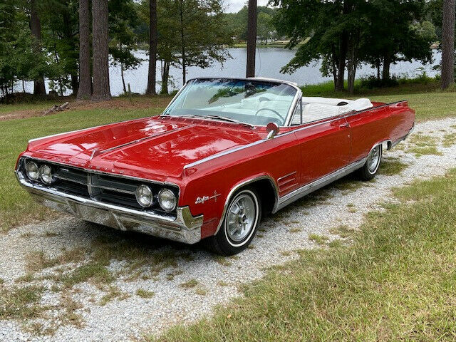 1964 Oldsmobile Starfire Convertible(VIN 864M157252)-One of reportedly only 3,903 Starfire Convertibles produced in '64, this red beauty was reportedly purchased new in Oklahoma and is showing but 82K miles.According to OLD CARS WEEKLY MAGAZINE, âWhen marketing the Starfire, Oldsmobile exclaimed: âHigh adventure starts here. Someday thereâll be another car that combines the niceties of life with the thrill of the open road as neatly as Starfire does. But not this year. From its bold new grille and functional fender vents to its exclusive dual-chambered exhaust, this beautyâs new action silhouette says â64 belongs to Starfire! Sample the fire of the 345-hp Starfire V-8. The quiet authority of T-stick Hydra-Matic, power steering and brakes. Along with leather-trimmed buckets and sports console, theyâre all part of the package! One thingâs for sure: When you flip the key to a Starfire, youâre pulling the pin on one of Americaâs most exciting cars!'âThe interior standard features included Hydra-Matic automatic transmission shifter, original white leather trimmed bucket seats, safety padded dash, center console, tachometer, leather trim, power steering, power brakes, and windows. This car also has FACTORY AIR CONDITIONING, Speed minder, remote o/s mirror, and the gorgeous optional âsports car wheels.â Also on this example is a fuel filler door guard which added a whopping $1.61 to the list price. The headlight âstarfiresâ are still present. Many were removed when new as local police thought that they may reduce the effectiveness of the headlights. The underside of this car is beautiful and has previously been cleaned and detailed.This car was originally gold, but a previous collector had it correctly repainted in Holiday Red which is beautiful with the white convertible top and interior. Older paint is good but not perfect as it has some minor cracking around. The cracking is not bad or nearly bad enough to warrant repainting, but there nonetheless. Car runs and drives great!! $31,900 Delivery arranged. Financing available through JJ Best Collector Car Financiers (jjbest.com). Tom Mack Classics has been trading in quality collector cars since 1980 and we are located near Columbia, South Carolina just off of !-26 and about 45 minutes from the Columbia, SC Airport (CAE). For more information about this significant Oldsmobile, please call Tom Mack at 803-351-3695PRICE REDUCED TO $29,500! As with all of our collector cars, this one is sold as-is, without any warranty whatever. We encourage your personal inspection.