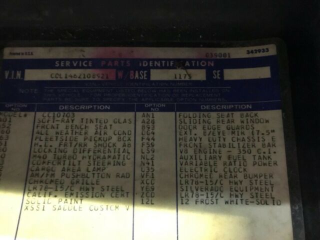 Factory Full Loaded Truck, A/C, Silverado Package, Short Bed, Chrome Package, Clock, Posi Diff, custom interior, Tonneau Fiberglass cover, etc... First Year of Option Silverado Package!The Truck Runs and Drives and COLD A/C!!!Original Patina paint over a super 100% solid truckOne owner CA Truck with 107290 Miles.100% Rust and bondo free.The truck have Broadcast or Buildsheet, Original Owner Title, lots of service papers... etcFull Payment in 3 daysNo warranties and no returnsThe truck is a survivor but have more then 40 years old, Is a classic truck not Brand new truck.I will try to accommodate parties with serious interest. What I won't tolerate is tire kickers, low ballers, and bullshitters. Don´t waste my time and yours.more informations.Yes, the title is clear in original owner name (original 1976 Title) and it is transferable, no problems. I kept it like this because I wanted to retain original title for collection purposes.Truck is in South of Jacksonville - FL close to i295 exit.Is amazing 100% rust free and 100% bondo Free Survivor truck, runs and drives, A/C work fine, needs little TLC... daily driver easily, need front windshield (have a crack) and change bearing of steering column.Is a special ordened truck by CA owner, Full loaded, A/C, 350, th400, 2 fuel tanks, special mirrors, silverado package, posi rear end, HD suspension, power disc brakes, power steering, cargo lamp, chrome rear bumper, trailer options, tilt steering column, etc....