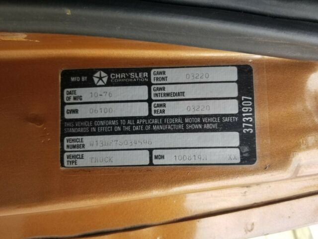 Vehicle Description*1977 DODGE POWER WAGON âTRUE SPIRITâ STEPSIDE*360 AUTOMATIC TRANS (REBUILT) *4X4* POWER STEERING *POWER BRAKES* ORIGINAL SURVIVOR SEE PIN STRIPING AND PHOTOS.*RUNS GREAT * FUN TRUCK DAILY DRIVER* VINTAGE NEW INTERIOR (SPLIT BENCH/CONSOLE)*VERY CLEAN CALIFORNIA TRUCK INCLUDING FRAME AND RUNNING GEAR* NICE FACTORY DASH AND GAUGES & VINTAGE TAC- ALL WORK* DRIVER QUALITY ORIGINAL SURVIVOR PAINT* WEAR AND RUST EXIST 43 YEAR OLD TRUCK (SEE ALL PHOTOS)* ORIGINAL CALIRORNIA BLUE PLATES AND CLEAR TITLE IN MY NAME(10 YEARS DRIVER)* PASSES AND HAS CURRENT CALIFORNIA SMOG * DRIVE IT HOME AS A SURVIVOR OR RESTORE IT* MOST PARTS AVAILABLE INTERCHANGE WITH âLIL RED EXPRESSâ* $500. DUE AT CLOSE OF AUCTION FULL BALANCE DUE WITHIN 3 DAYS OF CLOSE.TERMS OF SALE:By placing a bid on this vehicle you are entering into alegal and binding contract to purchase the above-described vehicle. We reservethe right to cancel all existing bids and end the auction early should the itemno longer be available for sale. As-is no warranty:This vehicle is being sold as is, where is with no warranty, expressed, writtenor implied. The seller shall not be responsible for the correct description,authenticity, genuineness, or defects herein and make no warranty in connectiontherewith, no allowance or set aside will be made on account of anyincorrectness, imperfection, defect or damage. Any descriptions orrepresentations are for identification purposes only and are not to beconstrued as a warranty of any type. It is the responsibility of the buyer tohave thoroughly inspected the vehicle and to have satisfied himself or herselfas to the condition and value and to purchase based up that judgment solely.The seller shall and will make every responsible effort to disclose any knowdefects associated with this vehicle at the buyerâs request prior to the closeof sale. Seller assumes no responsibility for any repairs regardless of anyoral statements about the vehicle.