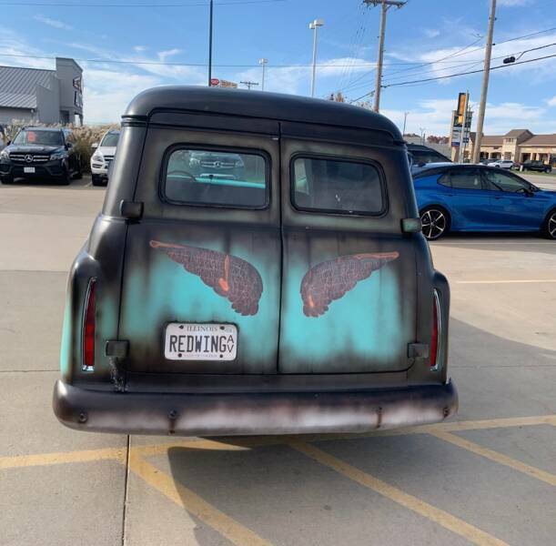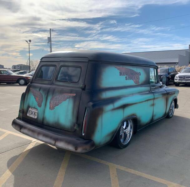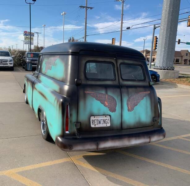 .cfs-fb-header-3 { background-color: #f5f5f5; width: 100%; border: solid 1px #ccc; font-family: "Open Sans", Helvetica, Arial, sans-serif; font-weight: 400; } .cfs-fb-header-3 .dealer-name { background-color: #fff; text-align: center; color: #333; font-size: 2.3em; font-weight: 300; margin: 0; padding: 20px; } .cfs-fb-header-3 .address-bar { color: #555; border-top: 1px solid #ccc; height: 38px; padding: 0 10px 0 10px; line-height: 35px; padding-top: 1px; } .cfs-fb-header-3 .dealer-address { float: left; } .cfs-fb-header-3 .dealer-address:before { font-family: FontAwesome; content: "\f015"; color: #5E5E5E; margin-right: 7px; } .cfs-fb-header-3 .dealer-phone { float: right; margin-right: 20px; } .cfs-fb-header-3 .dealer-phone:before { font-family: FontAwesome; content: "\F095"; color: #5E5E5E; margin-right: 7px; } .clearfix:before, .clearfix:after { display: table; content: " "; } .clearfix:after { clear: both; } Bogie's Motors 2200 Forest Avenue, Saint Louis, MO 63139 (314) 703-7004 1956 Chevrolet 3100 Panel Delivery Truck VIN3A560010878ConditionUsedMileage15,777EngineV8 6.5L “396”Fuel TypeGasolineTransmissionAutomaticDrivetrainRear Wheel DriveExterior ColorGreenInterior ColorBrownInterior FabricLeather !Please Ask Questions!FREE Shipping to your Door!Unbelievable Panel Truck! Solid as they come from the Southwest USA! Has great patina rust free, super strong and drives fantastic. 396 motor, 400 transmission...see more below. Email, call or text 314.703.7004 with any questions see all my cars at www.bogiesmotors.com. Trades ok!!Bogies Motors has been selling on ebay for over 20 years...please make an offer in confidence. I am "Bogie" the owner and only employee....I personally drive all my vehicles so they are ready to go anywhere. Thank You...Bogie1956 CHEVY 3100 PANEL WAGONBIG BLOCK 396HIGH END INTERIORKILLER STANCEKILLER SOUNDBIG BLOCK 396TURBO 400 TRANSMISSION10 BLOLT POSI REAR ENDFRAME MOUNTED BRAKE BOOSTERDISC BRAKESPOWER STEERING18" RIDLER WHEELS AND TIRESEDELBROCK CARBEDELBROCK INTAKECHROME ALTERNATORALUMINUM FUEL TANK UNDER REARHIGH END INTERIORDIAMOND STITCHED SEATWITH MATCHING HEADLINERSADDLE BROWN LOOP CARPET THROUGHOUTNICELY PAINTED DASH AND DOOR JAMBSLOKAR SHIFTERDOLPHIN GAUGESNEW WIRING HARNESSNEW WINDSHIELDNEW WINDOW SEALSNEW WINDOW FELTSWINDOWS ROLL UP NICENEW FRONT AND REAR DOOR SEALSREAR DOOR HANDLES ARE SHAVEDREAR DOORS HAVE DOOR POPPERSCUSTOM FRENCHED IN CADDILAC TAIL LIGHTSSMOOTHED UP FIREWALL NICELY PAINTEDHIGHLY DETAILED ENGINE BAY Address: 2200 Forest AvenueSaint Louis, MO 63139View Map Phone(314) 703-7004 Business Hours:Sunday0 - 12:00 AMMonday10:00 AM - 4:00 PMTuesday10:00 AM - 4:00 PMWednesday10:00 AM - 4:00 PMThursday10:00 AM - 4:00 PMFriday10:00 AM - 4:00 PMSaturday0 - This eBay Listing Template is created by Carsforsale.com. Call 1-866-388-9778 to find out how Carsforsale.com can service your dealership.
