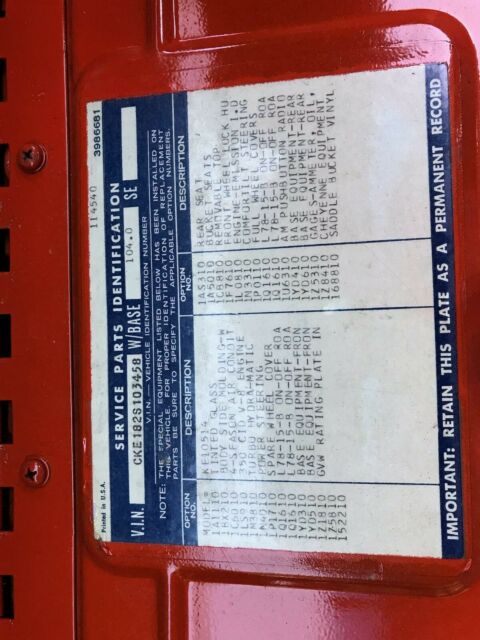 | Year: | 1972 | VIN (Vehicle Identification Number): | CKE182S108458 |