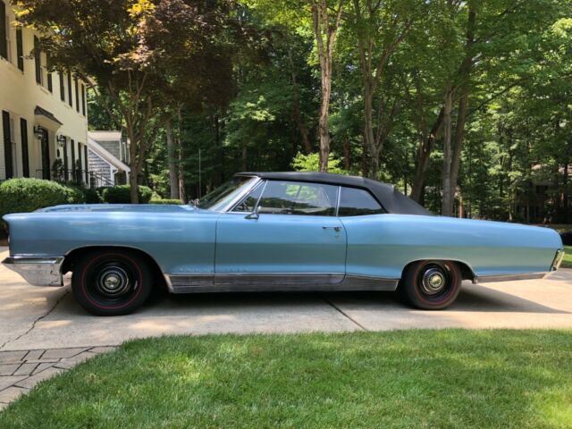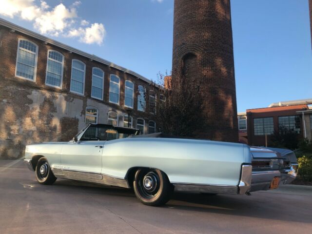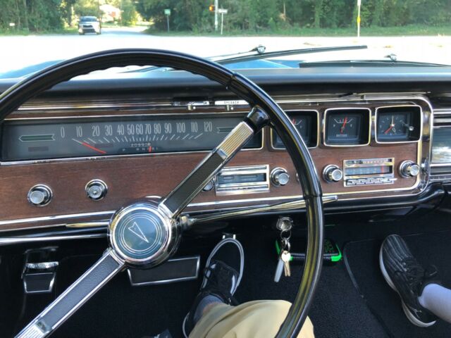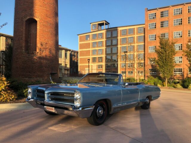 One of the sharpest looking Bonnevilles in the country. I kept the car looking original with subtle upgrades and various styling cues that are period correct. The car has a 389 with new Edelbrock performer 750 CFM. Lots of engine updates including new power steering pump, water pump, timing chain and gears. New Master Power disc brake kit on the front (car stops really well). Restored and powder coated 15" steel wheels with Coker redlines and GTO dog dish hubcaps. Servicing the transmission, rear end and oil change this week. New dual exhaust system with Magna Flow mufflers. New hidden sound system with Infinity bluetooth amp, subwoofer under the seat, and 4 hidden speakers. The original radio still works with the front dash speaker to keep dash original. Lots of new switches and repairs to the dash and signals. Newly chromed front bumper. Full length red soft indoor car cover. Fully restored interior - restored top frame, new top (with glass window), new carpet, recovered seats and all new chrome trim. Sharp paint job with a factory original color. New battery. New clutch and fan blade. Great driver with car show potential. Lots of wows every time I drive it. A beautiful large body convertible for your collection. Original paperwork and dealer booklets for the car.