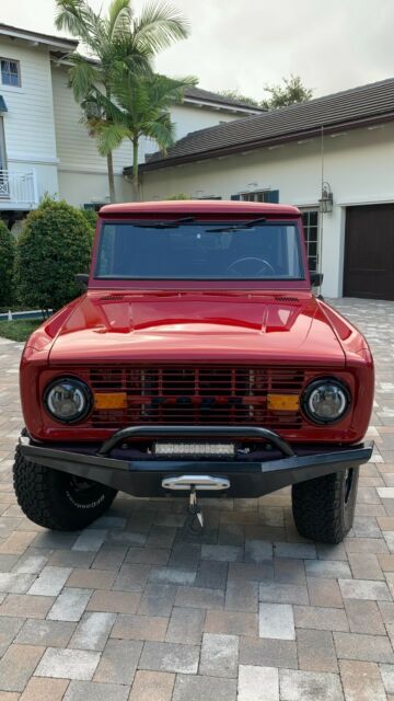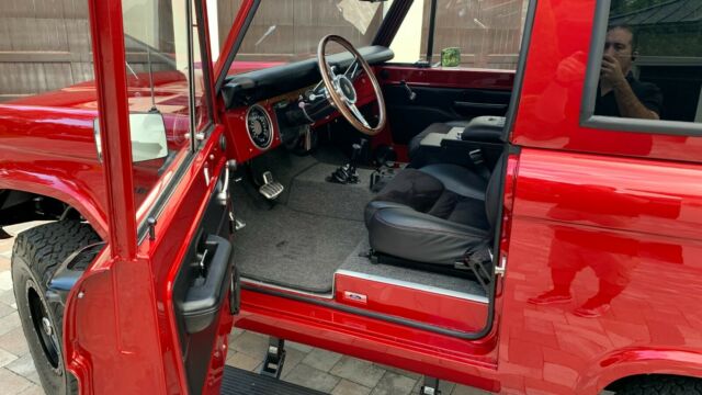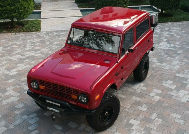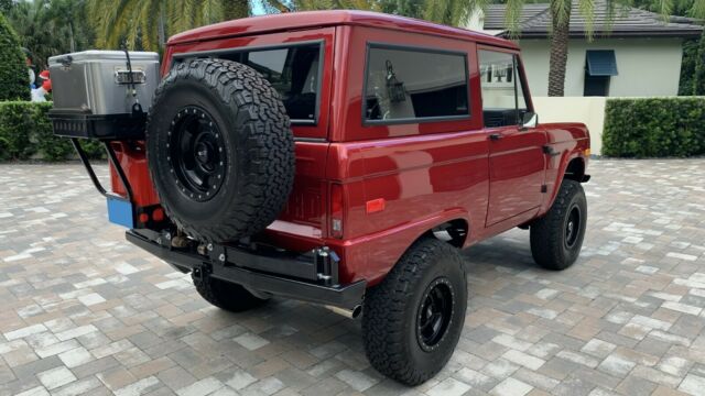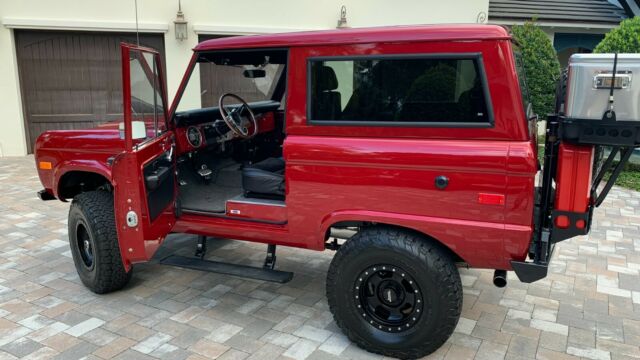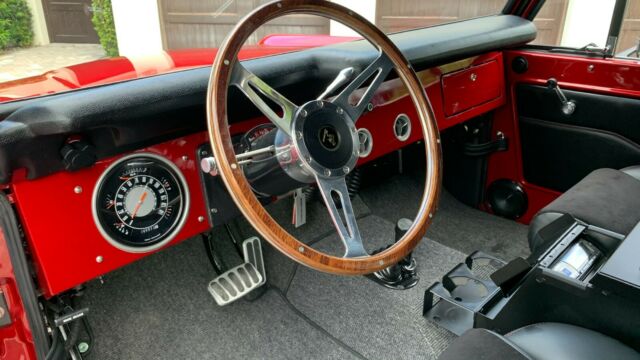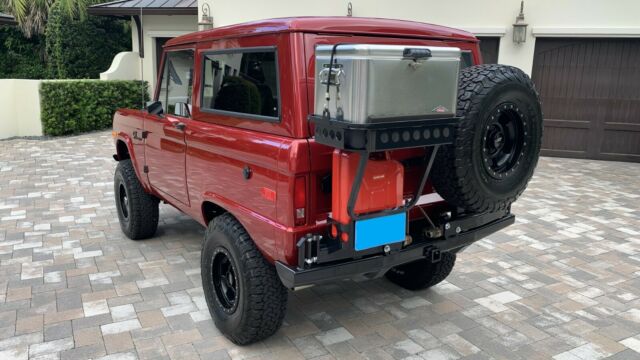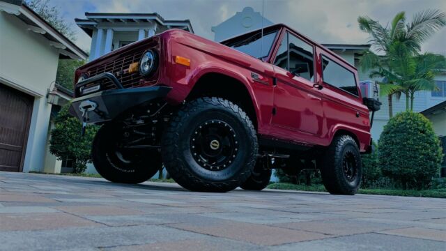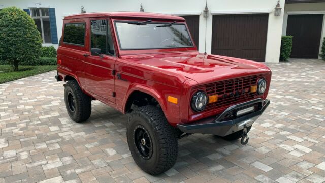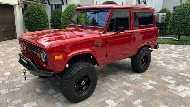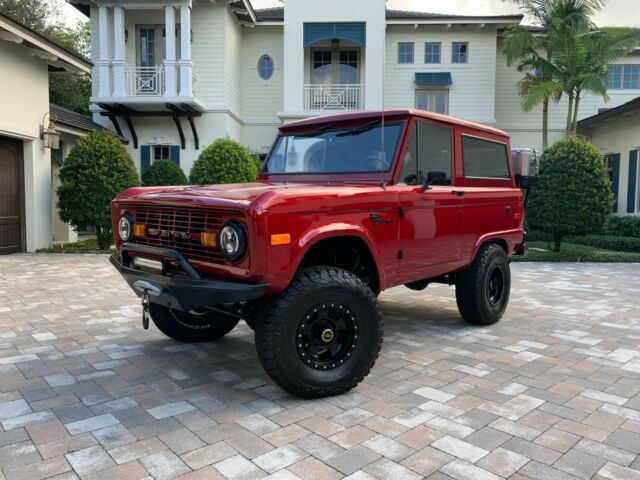 HIGHLIGHTSFrame-off build completed by Gateway Bronco in Hamel, IllinoisBody stripped to bare metalPowdercoated frame, Raptor-lined undercarraige5.0L V-8 engine with aluminum headsElectronic fuel injectionCeramic coated stainless exhaust4-speed automatic transmission9 inch rear endDana front differentialBilstein 2 inch aluminum body liftFront and rear sway barsWilwood 4-wheel disc brakes with HydroboostCandy Apple Red finishPorsche high-back leather seats with suedeWool carpet front and backColor-matched hardtop with suede liningPower windows with vintage handlesAir conditioningPower retractable side steps3-point seatbelts and family roll barImpact bumpers with winch and spare tireNew heat shieldingNew steering columnAlpine stereoThe idea behind the Bronco began in the early 1960s, and the final approval came from Lee Iacocca before production began in early 1964. The Bronco was designed to combat the popular Jeep CJ-5 and International Harvester Scout models. Originally designed with its own frame, the Bronco sold well before SUVs became more popular thanks to their on- and off-road capabilities heading into the mid- to late-70s. This 1972 Ford Bronco was built from the frame up by Gateway Bronco in Hamel, Illinois. Aftermarket touches include a powder-coated frame and a Raptor Liner-lined undercarriage. The body of this Ford Bronco was stripped to bare metal before being refinished in an eye-catching Candy Apple Red paint. Exterior options include black impact bumpers with a built-in winch on the front unit and a spare tire mounted on the rear, a color-matched hardtop featuring suede lining and power retractable side steps, and an accessory rack with space for a cooler and a gas can allows for more room inside on those long off-road trips. The interior of this Gateway Bronco is finished with matching Candy Apple Red accents and features Porsche high-back leather seats with suede inserts, an Alpine stereo system, three-point seatbelts, a family roll bar, wool carpet throughout and a new steering column mounted with a wood-grain steering wheel. Power options include power windows with vintage handles and air conditioning. Powering this beautifully outfitted 1972 Ford Bronco is a 5.0L V-8 engine featuring aluminum heads, electronic fuel injection, a ceramic-coated stainless exhaust system and new heat shielding. The formidable V-8 powerplant is fully capable of getting you across any terrain, and itâs run through its paces by a 4-speed automatic transmission. Power is funneled to the wheels through a 9-inch rear end and a Dana front differential. Other suspension and powertrain options feature a Bilstein 2-inch aluminum body lift, front and rear sway bars and Wilwood 4-wheel disc brakes with Hydroboost.