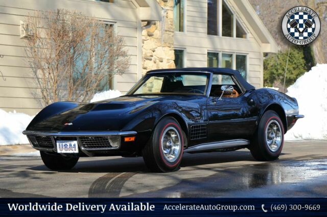 Best Offer Available1971 Chevrolet Corvette Conv LS5 454 Auto Trans ACTop Line InformationYear:1971VIN:194671S110813Make:ChevroletStock:110813Model/Trim:Corvette Conv LS5 454 Auto Trans ACCondition:Pre-OwnedBody:ConvertibleExterior:BlackInterior:Tan Mileage:12,864Drivetrain:Rear Wheel DriveAdditional Photos* * * Click Photos to Enlarge * * ** * * Click Photos to Enlarge * * *Phone: (469)300-9669Alt: 6086580550DescriptionThis vehicle is not on display to the public. An appointment is required to view it.Matching numbers LS5 454 V8 engine that's been upgraded to LS6 (425 HP) with date code correct componentsTwo year frame-off nut and bolt restoration by Cool Hand CustomsTH400 automatic transmissionOriginal restored removable hardtop includedTuxedo Black with factory deluxe Saddle leather interiorNumbers and dates correct block, heads, manifold, carburetor, distributor and spark plugs wiresOriginal dealer-installed air conditioningAccelerate Auto Group is a full-service dealership. Third-party inspections are always welcome. We also accept trade-ins. Please ask about our financing options, worldwide shipping, extended warranties and free airport pick-up! We can install any additional parts, upgrades or accessories you are interested in.Out of area buyers: PLEASE INQUIRE ABOUT FREE SHIPPING! We work very hard to accurately represent our vehicles through written descriptions and photos. As you know, pre-owned vehicles aren't brand new and may have normal wear and imperfections. Please read the descriptions thoroughly, view all pictures and make sure you're ready to buy before placing a bid as deposits are not refundable. Included Standard Equipment Hours of OperationMon: Tue: Wed: Thu: Fri: Sat: Sun: 10a - 7p10a - 7p10a - 7p10a - 7p10a - 7p10a - 7pClosed TravelInsurance Warranty Financing TermsPayment Types:Certified Funds and Institutional FinancingFees:Out of State/Country BuyersOut of state/country buyers are not charged tax, title, or license. You are responsible for registering the vehicle in your home state. Our out of sate/country documentation fee is $150.Taxes and FeesIn state buyers will be charged state and local taxes, title, registration, and documentation fees. Our in state documentation fee is $150. All sales transactions must be completed within 5 days of auction close.DepositWe require a $1000 deposit within 3 days of winning the auction. Please call the dealership to make arrangements for payment.Terms:Auction PoliciesCustomers with zero or negative feedback on eBay Motors please contact us prior to bidding. Otherwise, we reserve the right to cancel your bid. Understand this is only to protect the integrity of the auction. Winning bidder must contact the dealership within 24 hours of the auction close and the purchase transaction completed within 5 calendar days. We reserve the right to re-list or sell the vehicle in the event of a non-paying bidder.Buyer PickupA representative from our dealership can be available for pickup at area airports when necessary. Buyers must schedule pickup prior to making travel arrangements. Accelerate Auto Group5201 Grisham Dr.Rowlett, Texas 75088Phone: (469)300-9669Alt: 6086580550 ©2003-2020AutoRevo- All Rights ReservedDealer Websites and eBay Templates Powered byAutoRevo