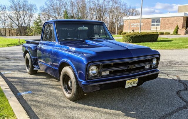 @import url(https://fonts.googleapis.com/css?family=Roboto); About this vehicle This 1967 Chevrolet C-10 is a modified vehicle with updates to the exterior, interior and drivetrain. The owner has had it for 5+ years. The vehicle runs great and is mainly used for car shows. Seller's Notes Please contact me with any questions. Mileage is obviously not original but approximately 3,000 miles has been put on the truck since frame-off restoration. Thanks. Vehicle Details Highly coveted 1967 Chevy C10 step side short bed pick up truck. People absolutely love this truck! Out of all the classic vehicles I've owned over the years, this truck by far attracts the most attention. This was a total frame-off restoration that is lightly restomoded with limited miles since its completion about 6 years ago. It's never seen rain since it's restoration and has been garage kept under a cover. Paint is quality and it's blue/black scheme giving the truck a stealthy look. Power train is small block 350 GM crate engine (with about 3,000 miles on it), Turbo 350 automatic transmission, power disc brakes and power steering. Suspension components were brand new at restoration. The truck is lowered but not slammed. Rides, handles and sounds awesome! All newer parts include Edelbrock intake, 750 Holly carb, headers, flow master exhaust, steel cowl hood, gas tank, etc. The custom interior is functional, comfortable and has a performance feel. Truck additionally has tinted windows, sliding rear window and a rear mounted tank allowing for extra storage behind seats. The center jump seat is belted allowing for 3 passengers and under the seat is also a storage console. At restoration all metal components were blasted, primed and coated (front fenders, rocker panels, tailgate were all replaced). 100% rust free. The truck bed liner is protected with a sealed wood floor and custom roll pan. I don't want to part with this beauty but am moving to a location with no garage. Thanks for your consideration and please contact with any questions. Exterior Interior Custom interior Engine 350 rebuilt crate motor, turbo 350 transmission Created on the eBay Motors app