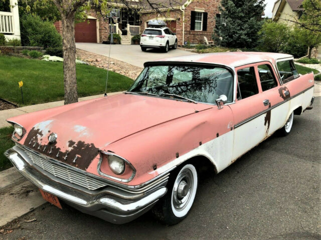 1957 Chrysler Windsor Town & Country Station Wagon with 45,422 miles on the odometer. Original Colorado vehicle, been in California since 2019. Rare, low production of 2,035 Windsor Wagons in 1957. Fairly rough, but with running 354â "Spitfire" Polysphere V8 and Torqueflite three-speed transmission, power steering and power brakes. All tinted glass is good except tailgate window has crack (replacement included). Upholstery has held up well, just needs deep cleaning. Body wears original Sunset Rose color but has dents in driver front and passenger rear quarters. Typical of 1957 Mopars, the rockers and lower rear quarters have rust along with the floorboards which are rusted through. Radiator has been misplaced.Included in sale are:*Two solid â57 fenders with single headlights*New left and right replacement new rocker panels*New floor patch panels*Replacement tailgate glass*Passenger outside mirror*Ignition key tumbler*Rear quarter trim spear*Original rubber floor mat*New radiator hoses.Vehicle must be towed. Push button transmission shifts, brakes need rebuilding.Odometer mileage is not known to be original or rolled over. I have the previous ownerâs clear Colorado title in hand - buyerâs responsibility to transfer. **This vehicle is being sold as-is,with no warranty - expressed, written or implied. The seller shall not be held responsible for authenticity, genuineness, or defects herein and makes no warranty in connection therewith. No allowance made on account of any incorrectness, imperfection defect or damage. It is the responsibility of the buyer to have thoroughly inspected the vehicle and satisfied themselves as to the condition of the vehicle. Please do not bid if you do not intend to complete the purchase. Feel free to message me with any questions prior to bidding. A $500 deposit is due within 48 hours of close of auction. Vehicle is to be paid in full within seven days from the close of this auction. Types of payment accepted: PayPal, in-person cash transfer, bank transfer, cashierâs check, money order. Vehicle and title will not be released until payment is made in full and/or payment clears. Winning bidder is responsible for all vehicle transportation costs, arrangements and insurance. Vehicle may be for sale in other publications and owner reserves the right to end the auction at any time.**