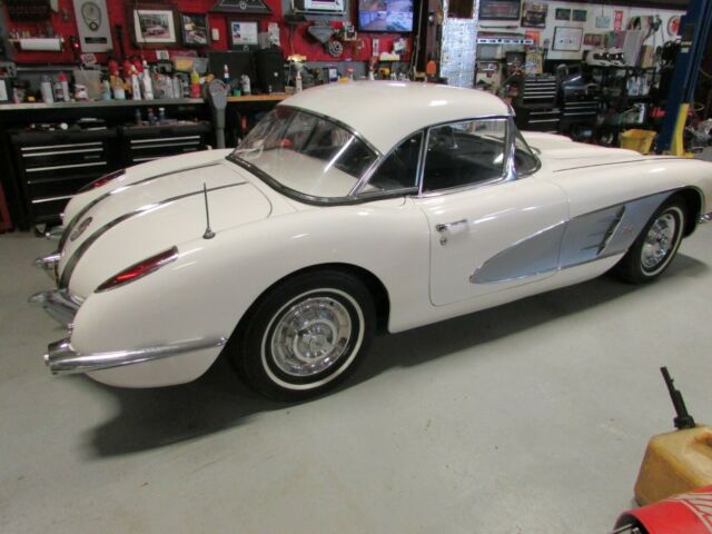 The Corvette was one of 9168 built in 1958. The Serial Number is J58S108089. The mileage (thought to be correct) shows 107000+/- miles. The car had sat up for sometime prior to this purchase. Harold did some work to get it back running well again and this included a new exhaust from the manifolds back; rebuild of the carburetor; new brake shoes, wheel cylinders and brake lines; new fuel tank and fuel lines; all fluids were changed; and new seat covers, cushions and carpet installed (Al Knoch); and about $2000 worth of new chrome on the front of the car.. The car cranks, starts, drives, shifts and stops very well. It is a good driver. Other than the items listed above the car is pretty much original. The car started out as a blue car (Royal Turquoise?) and was painted an unknown number of years ago. The white paint is nice. The car does not have the original engine. We think this 283 is of 1959 vintage. It runs very well. Little is known about the Powerglide two speed automatic transmission other than it is smooth and shifts very well. The car is easy to drive. The car has both hard top and the convertible top frame. The canvas off the convertible is gone but the frame is serviceable. All of the lights work. The tach needs a drive cable; the speedometer works. The chrome on the car is acceptable considering it is over 60 years old. The entire bottom of the car has 60+ years worth of road grime but no rust as the photos show. These C1 first generation Corvettes are in demand. Mostly unrestored examples like this are even more rare. The vehicle is located in rural Copiah County Ms just out side of Crystal Springs, Ms which is some 25 miles south of Jackson, Ms. The car can be seen, inspected and driven there. We have more photos that we can provide. Please direct any questions or requests to Mike Martin at 601-906-1196 or mikeamartin02349@gmail.com.