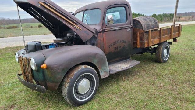 @import url(https://fonts.googleapis.com/css?family=Roboto); About this vehicle This 1942 Ford f1 is an original with updates to the interior and drivetrain. The owner has had it for 2 years. The vehicle is drivable and is mainly used for car shows. Seller's Notes Truck is sold as is . Nothing hidden, any addition questions call me. 812-677-3907 .... payment via pay pal with in 48 hours after auction. Pick up with in 2 weeks after auction. Unless agreed otherwise. Thank you and God Bless Vehicle Details Rare 1942 f1 1/2 ton jail bar ford. 42 is one of the rarest ford pickups and hard to find. This truck runs and drives. This is a retired John deere supplier truck. It is sitting on a 70s model frame. Has new white wall tires, power windows and wiper and Bluetooth radio. I have began sound deadening the truck and adding leather but it will need finished. The truck went to car show all summer but does have a small oil leak and the c4 transmission is getting weak but will drive anywhere as right now. The bed is brand new and the old whisky barrels are real ones. This truck turns heads everywhere it goes due to its year and original patina. Located in Princeton Indiana. Buyer will be expected to pay through pay pal with in 48 hours unless other agreements are made before auction ends. Pick up with in 2 weeks after auction ends. Thank you for looking and God Bless. Images Exterior Rare 1942 f1 1/2 ton jail bar ford. 42 is one of the rarest ford pickups and hard to find. This truck runs and drives. This is a retired John deere supplier truck. It is sitting on a 70s model frame. Has new white wall tires, power windows and wiper and Bluetooth radio. I have began sound deadening the truck and adding leather but it will need finished. The truck went to car show all summer but does have a small oil leak and the c4 transmission is getting weak but will drive anywhere as right now. The bed is brand new and the old whisky barrels are real ones. This truck turns heads everywhere it goes due to its year and original patina. Located in Princeton Indiana. Buyer will be expected to pay through pay pal with in 48 hours unless other agreements are made before auction ends. Pick up with in 2 weeks after auction ends. Thank you for looking and God Bless. Interior Original John deere painting on the door this truck is very photogenic Engine V8 302 runs good, has an oil leak and will need a new vehicle belt pully system (the belt squeaks from time to time) but starts right up. Created on the eBay Motors app