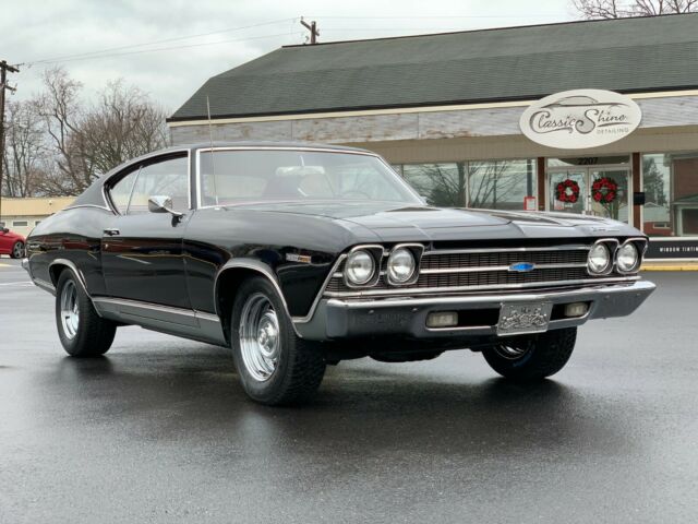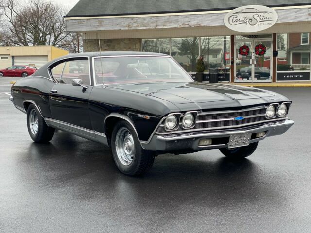 For sale is our 1969 Chevelle Malibu Sport Coupe. Tuxedo Black with matching vinyl top and red interior. Original 350 4 bolt V8 and Turbo 350. Original 3.08 open rear differential. This Chevelle had new quarters and a new paint job done in the late 80âs, but it looks like it was done yesterday. At that time the second owner also added the vinyl top. All of the top trim was taken off of a donor vehicle. We do have the original intake and 2 barrel carburetor, as well at the original air cleaner and wheels and hubcaps. They were replaced with a new Edelbrock Carburetor and RPM intake, which was completed in the 80"s as will. All gauges work as they should. The engine runs strong with no signs of smoking, The original Turbo 350 shifts as it should. I have personally driven this car 1000 miles with no issues. This is an extremely solid example of a driver resto, and would make a great addition to any collection. Message for more pictures or any additional questions, thanks for looking. Youtube Videos of this car: https://youtu.be/nitPpklDt1E https://youtu.be/jUBOH1kJACI