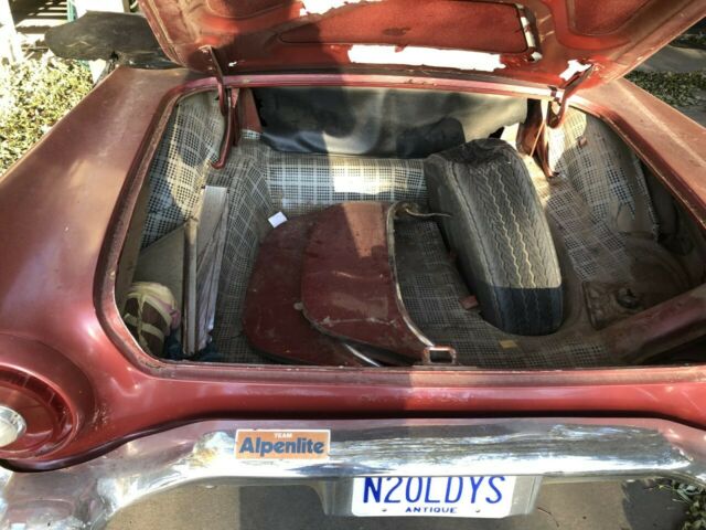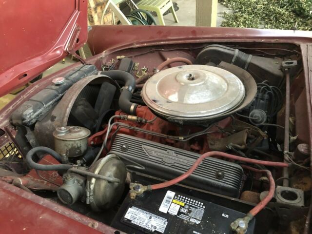 * I tried the key in the ignition and got nothing. I got the engine to turn over by hooking the battery directly to the relay. It ran for about 10-15 seconds. I'm not familiar with the electrical system, but I know it will run. Original engine w/ Holley carb. * The body has some rust as you can see from the pictures. Some of the spots will take some good body work. The majority of the rust is visible on the outside. The wheel wells are not as bad. Digging around in the garage, we manage to locate a box with $400 worth of repair panels for some of the rust spots. I noticed that the color code does not match the paint. * I do have some pictures underneath the car if you need them. * The interior is in really good condition for being 64 years old. The headliner has some rough spots on it, but the seats and dash are good. I don't see a retractable soft top behind the seats. The passenger side window has a scratch and should be replaced. * I found the original skirts in the trunk along with the spare. Spare is flat, along with the front passenger side tire. It will air up for transport. *New battery. I really want this classic to go to a good home. She needs some work, but I know there is plenty of potential here if you are looking to refurbish and flip it. If you have any questions, please feel free to ask. If you need specific pictures, I can get them to you. I want you to be happy with what you purchase, and I want you to know exactly what you are paying for.