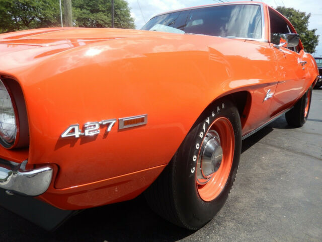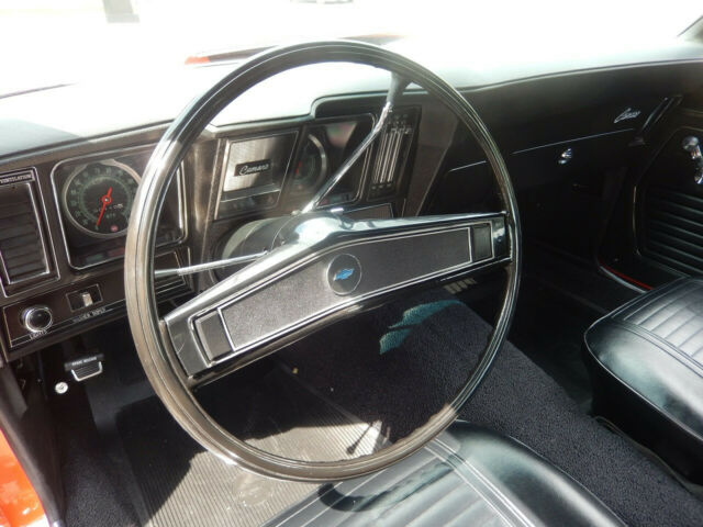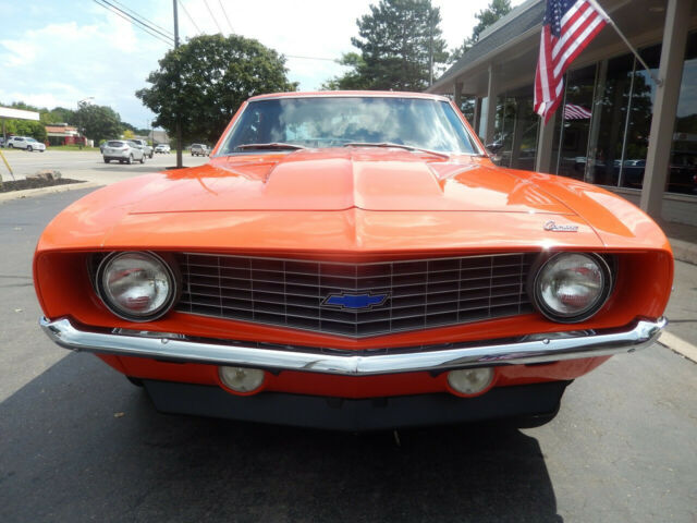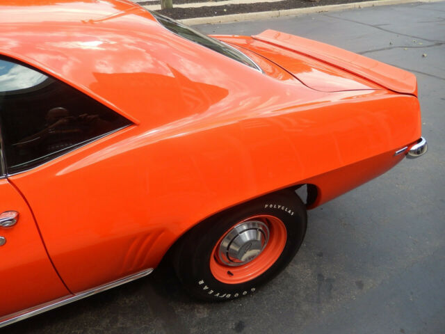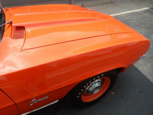 Not much to say.look at all the picts i feel this ranks up there with the top ones i see on here. look closely at details and undercarriage,thanks this 1969 copo tribute is, an original Hugger Orange car,3 year ,nut and bolt restoration [all bills]100 miles since done factory code 72 car When you look down the sides, you'll see a gorgeous reflection that shows off the arrow straight body. All the Glass in this Camaro is excellent along with the new seals. a. All the window trim and rocker molding are new,. To finish off the look it is sitting Steel Wheels that are body colored and have Goodyear White Letter Tires. professionally built 509 [bow tie block] engine ,iron heads, 4150 holley factory winters gm intake,factory exhaust manifolds ,valve covers,air cleaner, chambered exhaust.column shifted 400 turbo,buckets, radio delete,12 bolt 3.73 gears F 70 14 Goodyear poly glass tires ,factory steel wheels ,poverty hub caps,cowl hood ,front and rear spoilersNext, we will look at the interior of this tribute. On the inside it is also done in Black with the Bucket Seats that are all new along with the rear seat. The door panels all look excellent in this Camaro . This Camaro has the turbo 400 column shift [i.e. no option type car would have from factory]. This of course is a radio delete car,no ps/pb . The Speedometer and Fuel Gauges are in great condition and working. You will also notice the dash pad looks excellent as well and has a great fit. The carpet and headliner all new.Inside the trunk is all solid with all the jams being excellent along with the new weather stripping. It is detailed with the Splatter paint and has the ,factory jack with matching spare. i have clear SC title, any other picts needed feel free to ask, thanks DEPOSIT BY PAY PAL.[wont let me put it in] WITHIN 48 HRS 2000.00 THANKS
