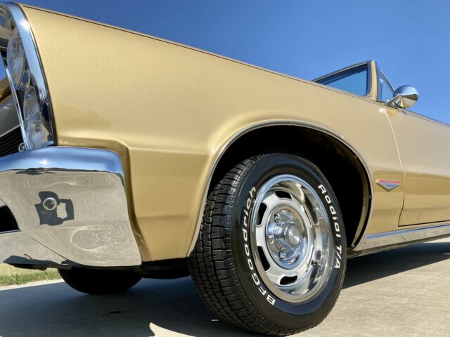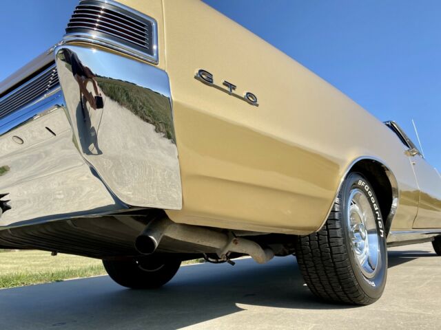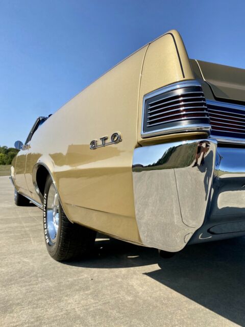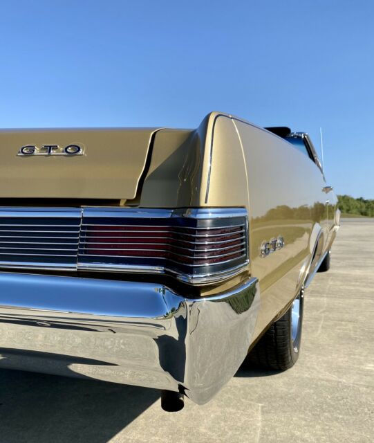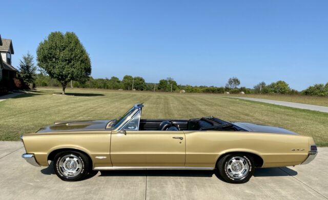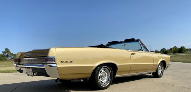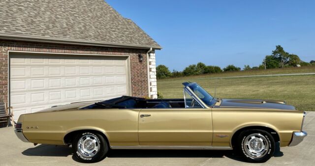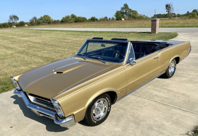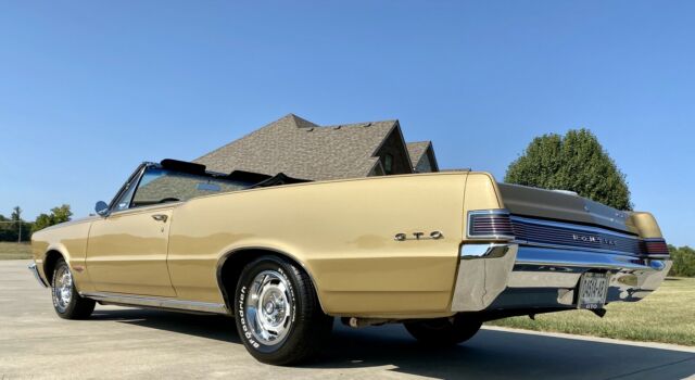 417-207-0390 1965 Pontiac GTO Convertible This is one of less than 100 Tiger Gold 65 GTO Convertibles produced. Have original build sheet and PHS papers to document car. Car has all the original sheet metal except for some patches in the trunk. The appearance of the trunk is original and a very nice job was done on the panel replacement. The car was originally equipped with a 389 4 barrel V8 and a 3spd manual transmission with Posi Sure Trac rear end. It now has a 1964 389 4 barrel and a Muncie 4spd transmission. The original Posi trac rear end is still in the car. This car is an older frame off restoration that still looks brand new. The paint is near perfect and the interior is like new. The only flaws in the paint are two stress cracks between the trunk lid and rear window which is common on convertibles. There are no chips or bubbles located anywhere on the car. Everything works on the car as it should. Car runs and drives down the road perfect. Car is equipped with drum brakes and power steering. Power convertible top. This is a low mileage car to begin with at the time of the restoration and has been stored in a climate controlled storage since 2003. All trim and chrome is in excellent condition with no peeling or pits. The Tiger Gold was a color used for marketing and not offered as a factory option. Here is your chance to own one of the more rare Pontiac GTOs every produced. Car is amazing and you will not be disappointed. See seller notes for details on payment and shipping. call 417-207-0390 for more info and pictures. $500 Deposit Due Via PayPal within 24hrs. The remainder is due within 7 days by bank wire transfer or cash in person. Buyer responsible for shipping. I can help with loading.
