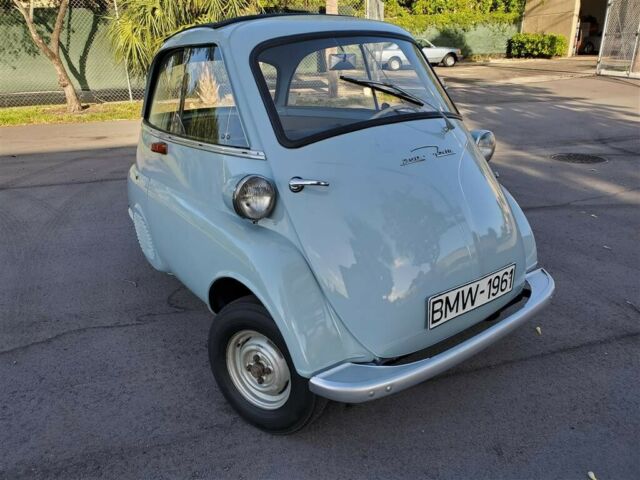 1961 BMW Isetta 250The Isetta was invented 1952 in Italy and the ''half car half motorcycle'' was licensed in 1956 to BMW in Munich Germany. In 1956 BMW started producing the car for the masses,turning the car into reliable transportation. Powered by a 250cc (15.2 Cubic Inch) 12 Horsepower, Single-Cylinder 4-Stroke, air-cooled Engine, and a 4 Speed Manual Transmission, the Isetta could reach 50 mph top speed. The exterior oft his '61 Isetta is finished in âBaby Blueâ with a beige/blue interior and a sunroof. This Isetta is only 7.5 feet long and 4.5 feet wide. The bench seat interior of this microcar is finished in black and beige vinyl that complements the exterior look of the car. The driver and passenger enter the cabin through a front opening door, with the door and steering wheel hinging out towards the front. I bought the car in 2009 in Germany from a BMW dealer who did some work on the car including overhauling the engine. Since then, the car is part of a private classic car collection stored in a climate-controlled warehouse in Deerfield Beach/Ft. Lauderdale Florida. In 2020 the fuel tank and carburetor were cleaned and a new 12-volt battery was installed. The odometer shows 30.660 Kilometers. (App. 19,000 miles). Probably the original kilometers but not guaranteed.The car runs well and is ready for showing and fun driving. The car is sold with a free and clear Florida title.