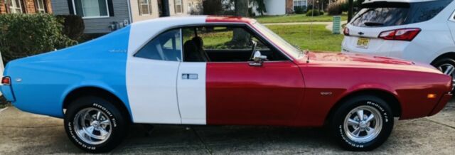 Be the King at Cars and Coffee Up for Auction is a Real Numbers Matching 1969 AMC Javelin SST with Replica of Ron Roots Drag Car Paint. Powered by a Very Reliable J290ci 200hp V8 with Automatic Transmission. Original 88,700 mile on Car. This is an Older restoration well cared for garaged always. Under Car is solid no rust, Body is solid and straight Paint is showing its age note: not show car Quality. Under the hood deserves respect. New Tires, Flow Master side Exhaust Sounds Great. You can drive this car with know worries. Starts right up and Goes. Original Owners manual and dealer Brochure. New Factory style Trunk Mat Note; no jack and spare tire. Original radio and all emblem in tack, New Factory Floor mats. All interior lights and Dash lights work. VIN DECODEA9C797M140717A-American Motors Corporation9-1969C-Automatic, Floor Shift7-Javelin9-2 Door Hardtop7-SSTM-290ci V8 2bbl 200hp140717-Sequential Unit NumberSeller's NotesNo Reserve Auction Please do not bid if you donât have any feedback score Exterior and InteriorPaint still looks great for Year Original Steering Wheel and Seat Belts with Shoulder Belts Corduroy Seats 100% Positive Feedback with Five Star RatingAny Questions to Help with Purchase Call 856-304-5704 Video available by TextVehicle is Located Minutes From PhiladelphiaDeposit after winning bid is Non Refundable for any reason