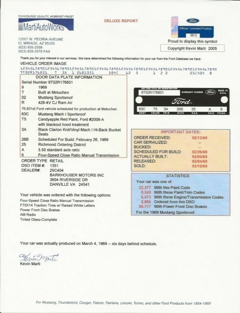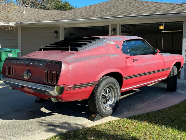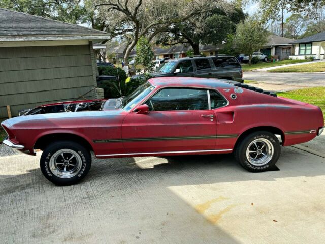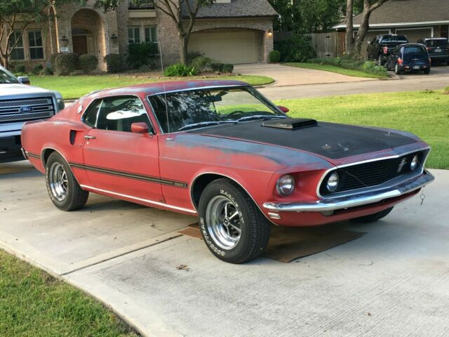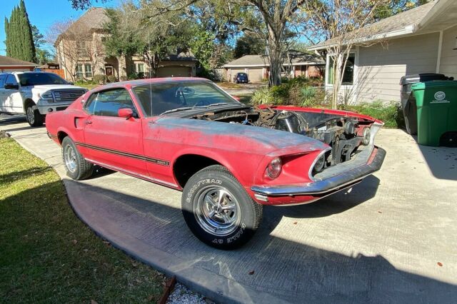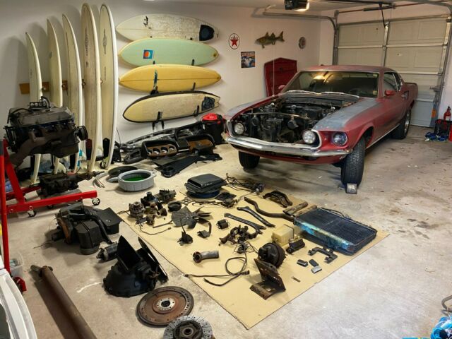 This car was built on March 4, 1969, and is an original candy apple red, 4-speed, shaker hood, R-code 428 Cobra Jet car. It has many original factory parts including, sheet metal, toploader transmission, glass, rear shocks & springs, etc. Original factory paint daubs can be seen on leaf springs & the drive shaft. The block and heads are not original; there is no VIN on the block which is date coded for May 1969, and the heads are date coded for June 1969. The original intake is date coded at February 4, 1969. It currently has a Hurst shifter. The interior is in very good condition. The front seats do not have the Mach 1 red stripe insert, but date codes on the seat tags are correct to the build date of the car. There is no corrosion at the inner fender-shock tower interface as seen on many vintage Mustangs. While the Marti report does not indicate that the car came from the factory with a tach dash and Traction-Lok rear-end, it has both; the date code on the tach dash circuit board is correct at January 29, 1969. VINs are present on both front inner fender aprons, window tag, door tag, and toploader transmission. The rear window louvres are Ford period correct as they have the numbered louvres. The car ran good when I bought it (see YouTube video below), but the brakes were almost non-existent, so I parked it, and began disassembly in preparation to send it off to be restored. Disassembly included removing the engine, transmission, drive shaft, fuel tank, fuel & brake lines, exhaust, brake booster, master cylinder, dash, carpet, heater, and other misc items (see pics). The fuel tank, exhaust, and carpet have been thrown away. The frame rails are solid (see pics), and most of the sheet metal is good condition, but some repairs will be required. Issues that need to be addressed include 1) crack on dash pad, 2) rust on hood, battery inner fender apron, cowl, doors, front floor pans, trunk drip rails, and 3) fiberglass repair on lower/underside of right rear quarter panel.Please note that the engine has been put back in the car for transport purposes.Please see 2-videos below. Please message me if you would like to see additional pics or have any questions.I highly recommend that you come view the car prior to bidding, and bid only ifyou have the funds for the car. Your bid is not contingent upon you securing financing for the car. Payment by bank wire/EFT. Vehicle released after receipt of funds. Deposit of $500 via Paypal within 24 hours of auction close. 1969 Mustang Mach 1 ... when I purchased in October, 2019 - YouTube[isdntekvideo] .ytvideo * { box-sizing:border-box; } .ytvideo { margin:.5em auto 40px auto; max-width:480px; font-family:arial; text-align:center; position:relative; min-height:120px; background-color:#555; } .ytvideo p { position:absolute; margin:0; color:white; background-color:rgba(0,0,0,.5); } .ytvideo .yt_hd { font-size:16px; width:100%; height:28px; line-height:28px; text-align:left; top:0; left:0; padding-left:10px; overflow:hidden; } .ytvideo .yt_ft { font-size:12px; width:100%; bottom:0; left:0; } .ytvideo img { display:block; max-width:100%; border:0; } .ytvideo a:after { content:"\A0\25BA"; position:absolute; width:60px; height:50px; left:0; top:0; right:0; bottom:0; margin:auto; border:0; border-radius:10px; color:white; background:rgba(0,0,0,.6); font-size:24px; line-height:50px; cursor:pointer; } .ytvideo a:hover:after { background:#CC181E; } .ytvideo .yt_inp { position:absolute; top:100%; left:0; width:100%; text-align:center; padding:.5em .2em; xfont-size:18px; border:0; color:white; background: rgba(0,0,0,.7); } @media(max-device-width:960px){ .ytvideo { margin-bottom:60px; } .ytvideo .yt_inp { padding:1em .2em; } } 1969 Mustang Mach 1 on Jan 10 2021 - YouTubeVideo will open in a new windowUsing the eBay App? Paste link into a browser window:[isdntekvideo]