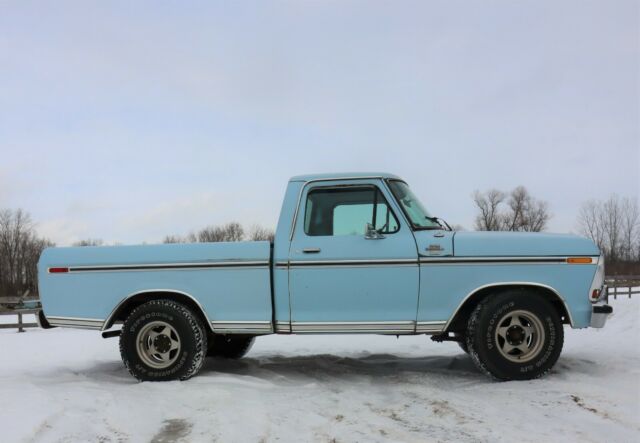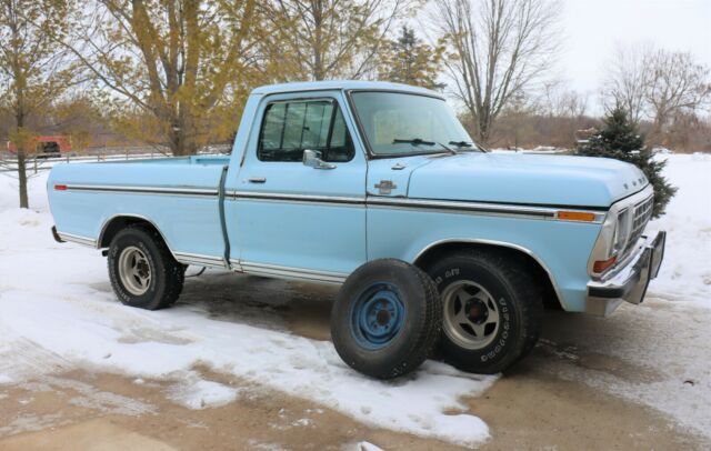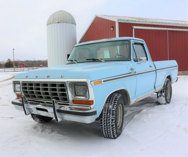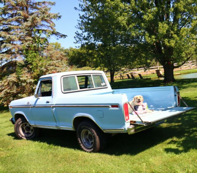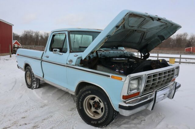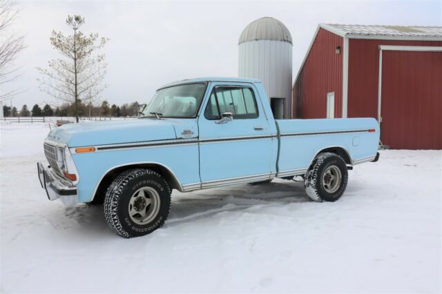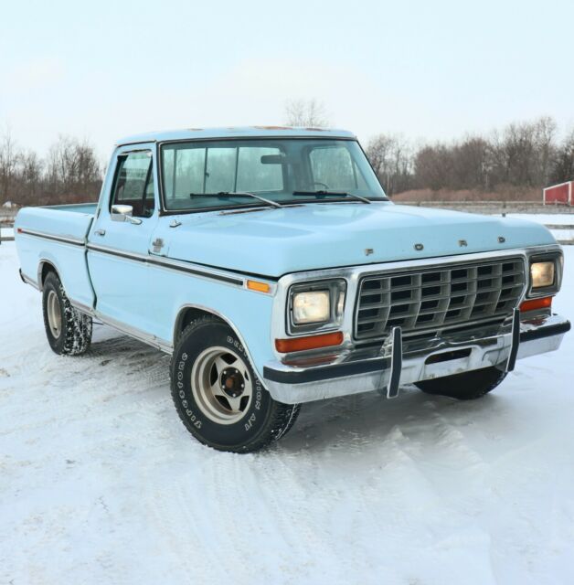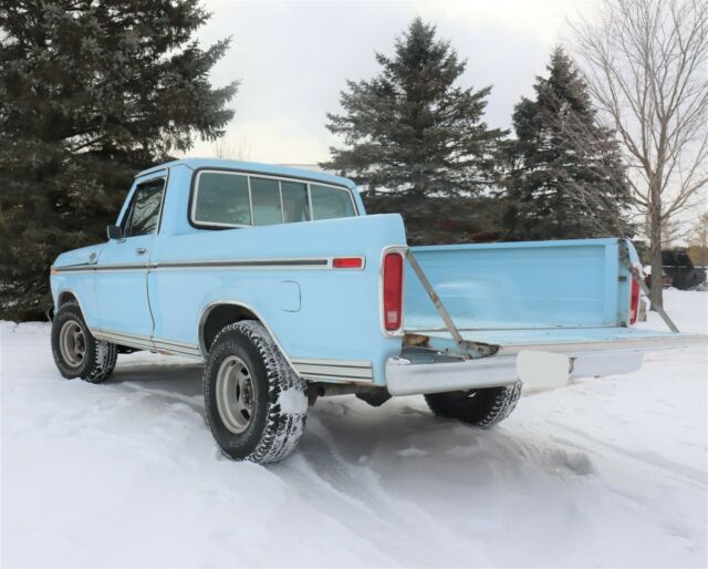 This beautiful little truck is an awesome one of a kind girl. We call her "Old Blue". She was my sweet 16 vehicle and for the last 6 years that I've owned her has been babied, stored in a heated garage and hasn't tasted snow until the day these pictures were taken. We have done some minor work to her and even cold she starts up purring like a kitten. With an automatic transmission and new dual exhaust Old Blue is a sweet ride. The Interior is very neat with working heat, replaced classic looking radio and original seat, carpet etc. Exterior Body is in excellent condition and still 95% original. What's more she even comes with the original owners manual from 1978. She is very clean under the hood With a 351 V8 motor, new alternator, battery, carburetor, gear box, plus a complete tune up. Brakes, brake reservoir, shocks, steering linkage, fuel pump, duel exhaust etc. In other words she runs like a dream with a lot of hours put into her by certified mechanics. 2 sets of Tires and Wheels come with the Truck Firestone A\T's with bigger rims ran for two summers ( June to September)and the set that came with the truck for a more classic look.Old blue is an icon. Everybody in our small town knows her. We can't go anywhere without her turning heads, people waving and honking. She has been the backdrop to many photo shoots and a companion to many teenage adventures! I would love to have Old Blue rehomed with someone who will appreciate her classic value as much as I have.