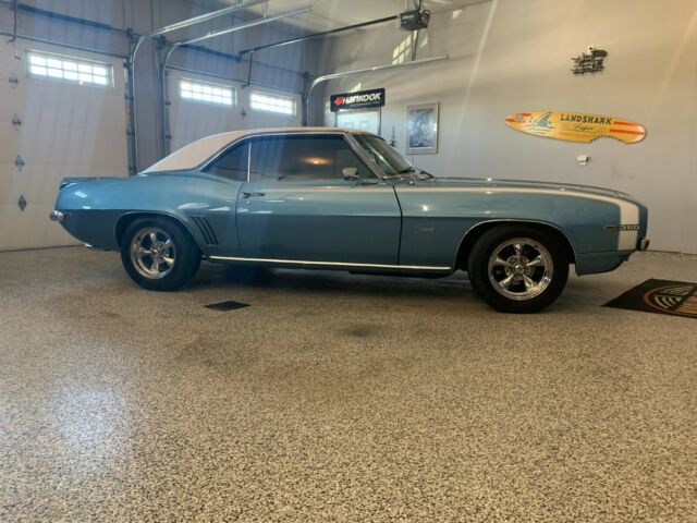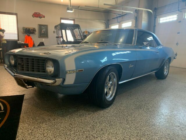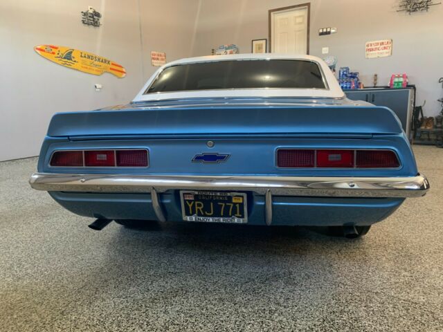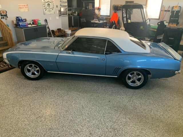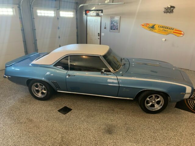 1969 Chevrolet Camaro Full Restoration Glacier Blue with White AccentYou are looking at one of the nicest 69 Camaros I have seen in the past 20 years. This is truly a Quality Build. My father and I have been selling Classic Cars for over 20 years. We have sold Thousands of classics and the build quality on this car will not leave you disappointed. The car has been Dyno Matted from top to bottom. Cars runs and drives like a new car, no shakes or rattles. We have seen cars that look great but drive like a bucket of bolts, this car drives even better then it looks and the Car looks amazing. When we took the car in we just sat in awww looking how well the car was built, every little detail was paid attention to. Below is just a brief listing. If you want more info feel free to contact us. If you don't like the price please don't waste our time with your negative comments just move on to the next listing. A 2 inch Binder full of receipts and documents will be included. Negative - 1 Small crack in paint (Pictured) from where they put new trim on. Fairly easy fix. NO other negatives. WILL NOT BE DISAPPOINTED! The car was driven on the Route 66 tour the past 3 years. Car drives 75 mph with a/c on like a dream. Full power seats and windows along with Cruise Control!Engine: GM Crate Motor 350 SBC, Ceramic Coated Headers, Edlebrock 600 CFM Carburetor,Edlebrock Intake Manifold, New Spark Plugs & Plug Wires, HEI Distributor, New Starter, Complete March Performance Serpentine Pulley Setup Drive Accessories New, Many other items that are new. Driveline: 700 R4, 3:55 Gears, 10 Bolt Rear end, Disc Brakes Front & Rear, B & M Converter Lock Up 70244, 700R4 Trans Cross Member, Overdrive Center Console Shifter, Pedal Pad Kit,American Thrust Torq Wheels, New 235/60/15s All around, Interior: Vintage Air Conditioning, Custom Kenwood Stereo & Speakers, Custom White & Leather Interior withall functioning controls including seats, windows, locks, viper alarm, Sirius XM Radio, Has Custom Billet Dash Pack everything works with blinkers, Dakota Digital Cruise Control System, Dash Matt, Factory Dash in Perfect Shape, Other mentions: Very Nice Mild Window Tint, Just about everything on the car is new , including moldings, door seals, nuts & bolts, door jam springs, you name it, very nice restoration build... that you can get in and drive anywhere...very reliable .The paint is extremely nice glacier blue flawless showroom finish. Have tons of receipts for just about everything done.Over 40+ K in receipts alone. This is a extremely nice and honest documented 1969 Camaro.Please contact Al (My Father) with any questions - 701-301-0174