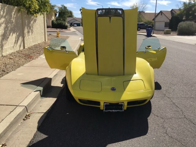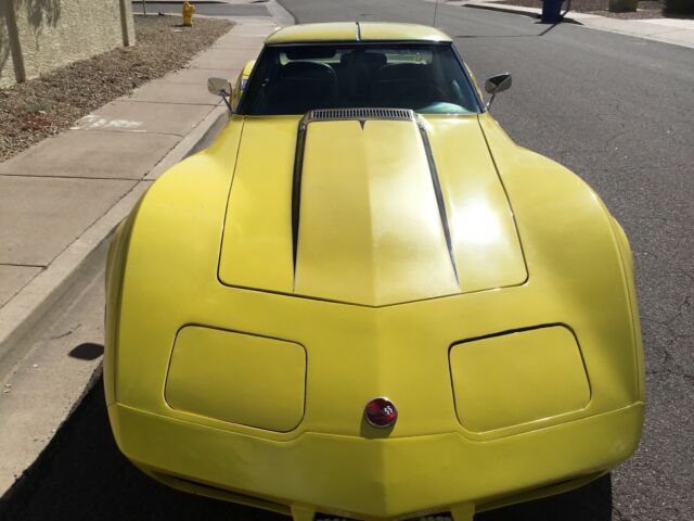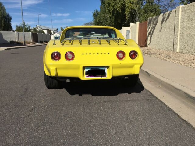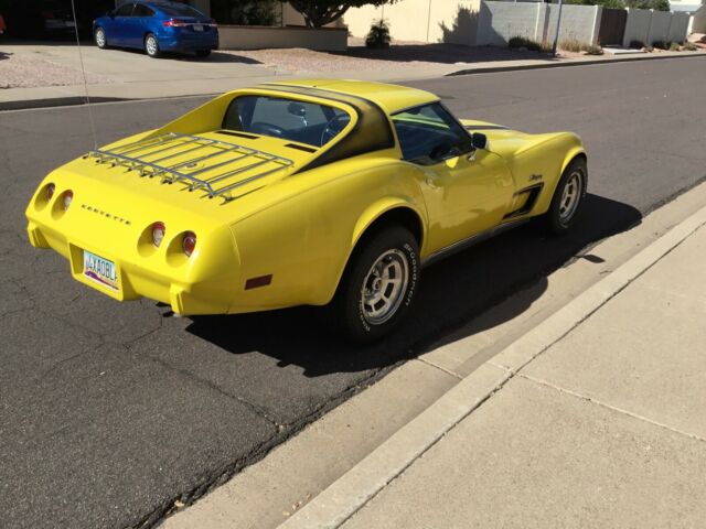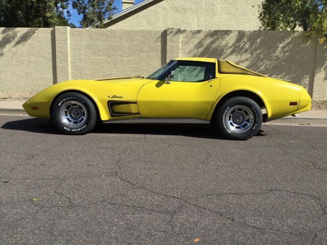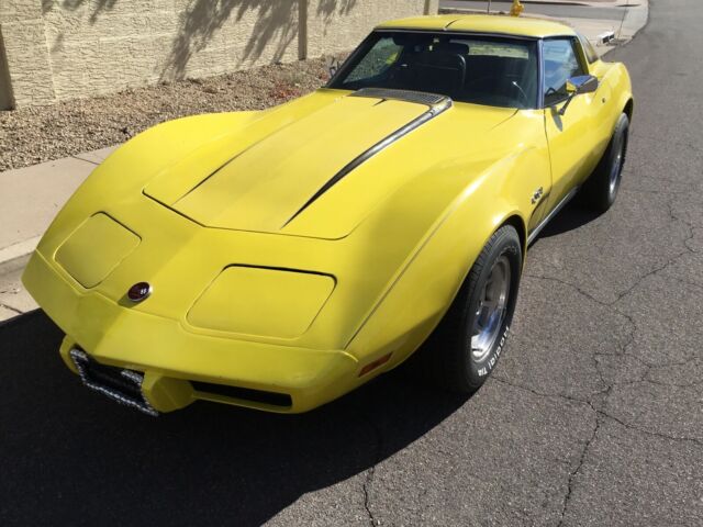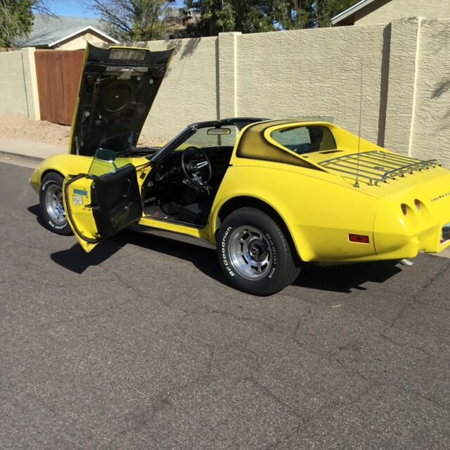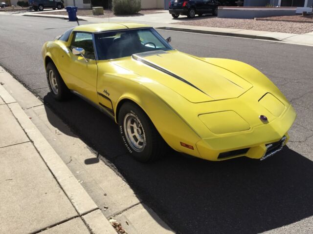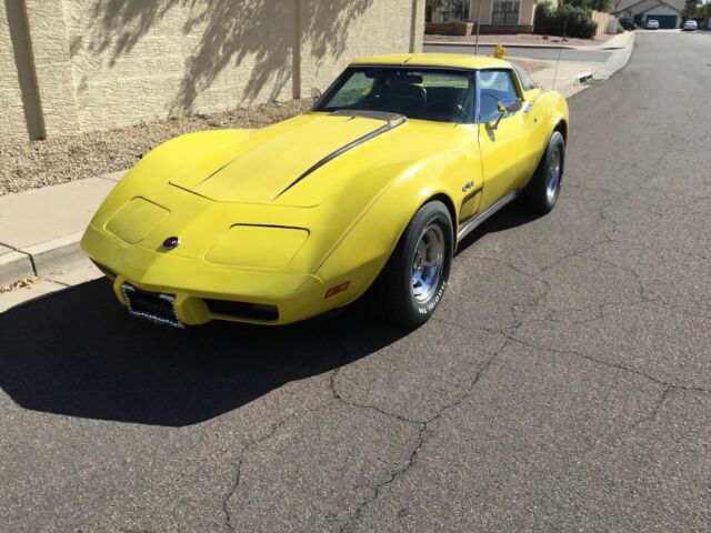 1975 Corvette C3 CoupeAutomaticRuns and drive great! I’ll do my best to explain what it has and what it needs-88500 miles are believed to be original.-Starts right up with 4 pumps to the pedal. Idles well. It burns a little oil as evidenced by small driveway drips and intermittent smoking when driving.-350 engine. It has L-82 badges and shifter plate decal but I don’t believe it is an L-82 engine-Automatic transmission shifts smoothly in all gears-New front end suspension with poly-bushings-New front shocks-New oil pan and pump-New front brakes pads, calipers, rotors, and hoses-Steering box reworked. Good tight steering-New Duralast battery-New rear shocks-New rear strut rods-New rear brake pads-New leaf spring and shackles-New 255/60r/15 tires all around with less than 150 miles gives it a great stance and a better ride. The spare is the same size but is not new. Spare tire tub is not mounted in photo but it is now. I took it off to do rear end. -4 wheel alignment done after new tires installed-Headlights go up and down as they should-Headlights, tail lights, break lights, turn signals all work-Cool looking chrome luggage rack-Yellow paint looks just ok in pics but the car needs to be repainted.-No rust except for some surface rust on undercarriage.-On the inside:All gauges work as they should- even the analog clock!-Power windows zip up and down as they should-Wipers work as they should-Aftermarket KHE 300 stereo with Bluetooth Pioneer speakers mounted in rear compartment lids. It doesn’t sound the greatest but gives you tunes for cruising-No cracks in dash. -Map pockets in good shape-Door panels are in good shape-Tear on side of drivers seat. See pic. Other than that seats are in good shape-Carpet needs to be replaced. See pic. Floor mats cover worst part but I was going to replace it all-Easy on and easy off T-Tops. Has lined storage bags. These fit in rear compartment but also has mounting brackets for luggage rack-Needs weatherstripping all around-Rear plastic window trim needs replaced.-Seat belts work as they shouldI drive this car every Saturday with no worries. Starts right up. Runs, steers, and drives great. But remember it’s almost 50 years old, needs some work, and even then won’t drive like a new car. I’ve done my best to describe it. Read the text, view the pics, and contact me with any questions prior to bidding. I’ll do my best to get back to you as quickly as possible.Thanks for looking! I’ve listed this for sale locally so will end auction early if it sells