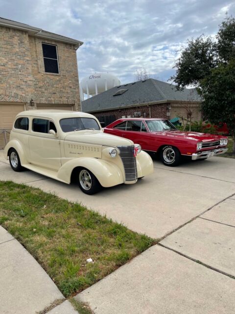 @import url(https://fonts.googleapis.com/css?family=Roboto); About this vehicle This 1938 Chevrolet Master Deluxe is a modified vehicle with updates to the exterior, interior and drivetrain. The owner has had it for 5+ years. The vehicle runs great and is mainly used for weekend drives. Seller's Notes I will pay half of shipping for continental US, international buyers will need to pay for shipping. Vehicle Details 1938 Chevy Master Deluxe Sedan Streetrod EXTERIOR: Beige steel body with hand painted pin stripes inside and out Shaved handles with remote door poppers Ground affects lighting Hidden front turn signals Boyd Coddington wheels with new rubber Power antenna INTERIOR: Custom tweed bucket seats front, deep bench seat back Custom center console Custom floor mats Lecarra leather steering wheel on a tilt column AM/FM/CD ENGINE AND MECHANICAL: Small block 350 V8 with automatic transmission out of â74 Camaro 650 Elderbrook Power steering Power brakes A/C Dual exhaust headers Turbo flows with chrome tips Not a trailer queen. Head turner and award winner that drives straight and FAST. Sheâs my weekend warrior. Handles phenomenally on the highway. Built to be an everyday driver with show quality appearance. Perfect car for someone who doesnât want to invest any more than a tank of gas every now and then. Test drive locally with valid ID and insurance. Exterior Interior Engine Download the eBay Motors app