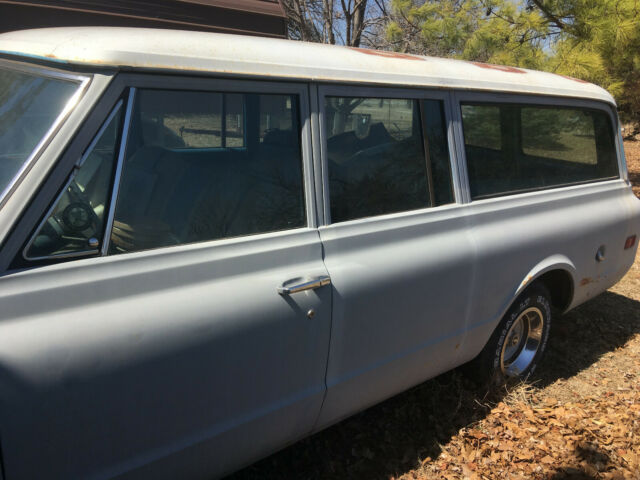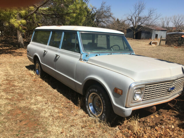 Chevrolet Suburban.1972 3 Door with barn doors on back. Rocker panels have been replaced and body has been primed. Top has not so refer to photos for rust. There are a couple of small rust areas on body - please refer to photos. The cowl piece missing in photo is in the truck. Vehicle has air conditioning but it does not work. There are a couple of boxes of new weatherstripping purchased several years ago - never removed from boxes so no sunlight exposure. The second seat is in the truck but not installed. Also included are two used Cadillac bucket seats. Set of steel wheels also in in back of truck. Vehicle has been parked for about 20 years, and was running when parked. Have not been able to get it started yet, but it does crank over. Modified fuel tank - think it is about 45 gallons. Have owned vehicle for 40 years and have clear title and purchase agreement. Mileage determined by original purchase agreement and current reading. Will provide additional photos upon request - just indicate if you want engine, interior, etc. Vehicle is located at Blanchard OK and must be picked up - no shipping. Vehicle will need to be trailered away.