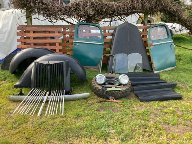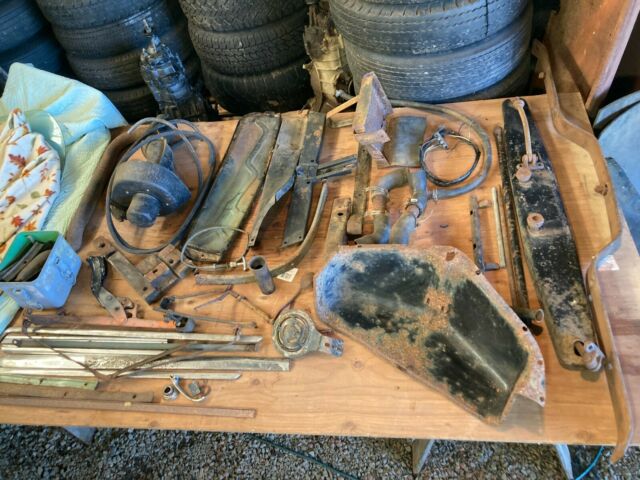 I got this truck in an estate buyout last year, most of the parts were laying on the flatbed. I finally was able to pull everything out and piece it together to see what I had, the pictures show it pieced together and disassembled. Don't worry, it is only put together with loose nuts and bolts, nails & bungees hold the doors on. Everything can be quickly disassembled again for transport. The previous owner bought this in Portland, OR back in 1992, it's been in various stages of body repair since, but definitely had not been worked on for a long time. I was told the engine and transmission was never worked on, so it will need a total rebuild. The flatbed wood is decent but is damaged, I was told the wood had to be cut on one piece to keep from warping. The stake bed sides, went together real easy, very good condition for age. Obviously the inside of the cab is missing a lot, the seats have two layers of vinyl, but missing a lot of cushion due to our little mousey friends. It steers and rolls, and there is a pile of other original parts I will include as well. See all photos, thanks.