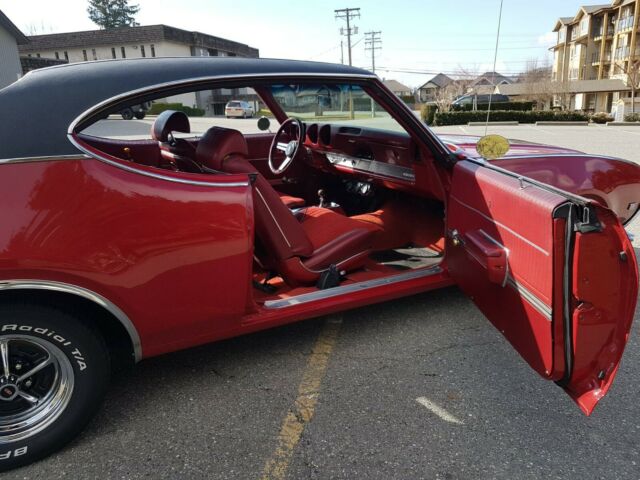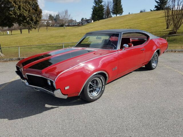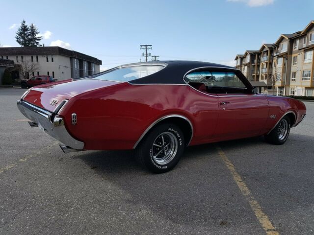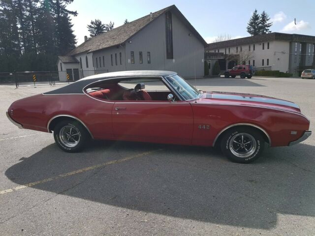 This 1969 Oldsmobile 442 Holiday Coupe has a Rebuilt 400 C.I. 4BBL V8 (#'s Matching), TH400 Automatic Transmission (#'s Matching). Canadian Built 442's Came w/ Chevy 12 Bolt Rear, w/ 3.23:1 Ratio. Correct Crimson Red Exterior w/ Black Top, Painted Stripes, Red Interior, New SSI Wheel w/ BF Goodrich Radial T/A's, Deluxe Wood Grain Interior w/ Center Console, Deluxe Upholstery, Tinted Windows, Rear Defroster, AM Radio Replaced By CD Stereo, Power Steering, Power Brakes, Clock Replaced By Tach, Hide-away Wipers, Deluxe Bucket Seats w/ Headrests. Nicely detailed trunk with full sized spare, trunk devider, mat and jack assembly, Dual Exhaust w/ Chrome Tips. 1 of Only 1,461 442's Produced In Canada. Sold New At Morrison Chev Olds Ltd. Victoria, BC. Comes w/ GM Canada documentation and the original owners manual. Also comes w/ original Intake/exhaust manifolds, value covers and others parts. Runs Strong. Not too many red on red 442's around. Starting bid $$35,000WINNING BIDDER PAYS $500.00 non-refundable deposit is due immediately upon auction close (Paypal). UNLESS A PRIOR AGREEMENT IS MADE WITH THE SELLER. BALANCE TO BE PAID WITHIN (3 DAYS) AFTER AUCTIONS END. BANK WIRE TRANSFER - CASHIERS CHECK - CASH! Note: Car is for sale locally. Seller has the right to end the auction early.SOLD "AS IS" WITH NO IMPLIED WARRANTY.VEHICLE AND/OR TITLE WILL BE RELEASED OR SHIPPED ONLY AFTER ALL PAYMENTS HAVE CLEARED ALL FINANCIAL INSTITUTIONS. BUYER RESPONSIBLE FOR ALL SHIPPING CHARGES.VEHICLE IS AVAILABLE FOR INSPECTION BY APPOINTMENT ONLY. WE WELCOME AN INSPECTION BY YOU OR YOUR DESIGNATED REPRESENTATIVE. COST OF THE INSPECTION IS THE SOLE RESPONSIBILITY OF THE BUYER. HAPPY BIDDING!!