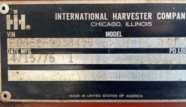 Available at LOW RESERVE is our 1976 International Harvester Scout II. This vintage 4X4 was finished in burnt orange with removeable hard top. Very nice pro interior with padded tan seats, clean dash gauge cluster, newer door panels, carpet kit, and headliner. Mechanically sound! Not a perfect show truck obviously with the patina but a good looking, reliable Scout ii you can enjoy and drive right away (daily driver if desired) and improve as you wish over the years.[Cut and paste video links if needed, press and hold link if on handheld device] Walk Around / Start video: https://youtu.be/ZU9OWfOoLm8 ------------------------------------------HIGHLIGHTS · International V8 with Automatic Transmission, 4X4, No Smoke or Leaks · Power Steering, New Steering Box and Steering Joints, very fun and easy to drive · New Exhaust, Battery, 2 Barrel Carburetor, Plastic Gas Tank, and Brakes · Clean and Comfortable Tan Bucket Seats w/ Matching Rear Bench, New Black Carpet Kit · Very Cool Patina with a few dings shows off the Rallye logos if you like that original look. If not a fan of the patina, paint the truck to your liking · Rust Free â no rot, only surface in areas. Good Body, Rockers, Floors, Bed, Body Mounts, and Frame all solid. Gotta slam doors to close, may need adjustment · Good Glass, Rubber, Bumpers, and Chrome Trim all around, nice Luggage Rack, Trailer Hitch · Removable Metal Hardtop in good shape, rear hatch T-handle opens and closes with ease, unique Sliding Side Glass · Newer matching Michelin Tires (P235/75R15) all around on nice 15â Rally Wheels, comes with full spare · Headlights, Blinkers, Interior Lights, Gauges / Speedometer and Horn all work; stock radio and wipers need reconnection Please review our 100% positive feedback rating and see that we have been a reputable eBay member for 22 years. Please review the description and photos / video before bidding and feel free to ask questions.Clean title in-hand. Thanks and good luck.TERMS OF SALE 1. A $500 NON-REFUNDABLE DEPOSIT IS REQUIRED WITHIN 24 HOURS OF AUCTION END (VENMO, ZELLE, PAYPAL ACCEPTED). FULL BALANCE IS DUE WITHIN 7 DAYS OF AUCTION END (WIRE TRANSFER PREFERRED).2. BUYER IS RESPONSIBLE FOR SHIPPING. SELLER WILL ASSIST SHIPPER AS NEEDED. ALL FUNDS MUST CLEAR BEFORE SHIPPING THE VEHICLE AND TITLE.3. VEHICLE IS SOLD âAS-IS WHERE-ISâ. NOT A SHOW TRUCK. SOLID ENTRY LEVEL SCOUT. THERE IS NO WARRANTY OF ANY KIND EXPRESSED, WRITTEN, OR IMPLIED. BUYER OR 3rd PARTY INSPECTIONS ARE WELCOME BEFORE AUCTION END. 4. VEHICLE IS FOR SALE LOCALLY SO SELLER RESERVES THE RIGHT TO END AUCTION EARLY. IF GENUINELY INTERESTED, CONTACT SELLER TO MAKE A REASONABLE OFFER.
