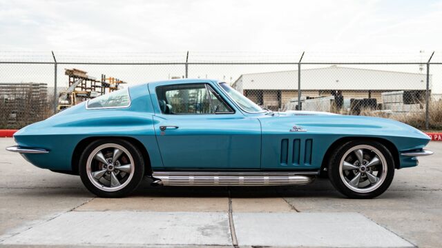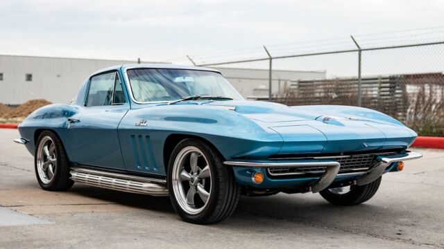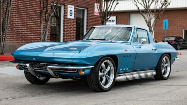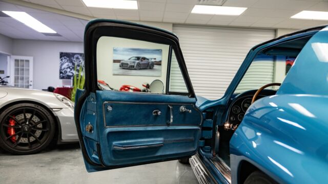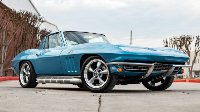Pushing 425HP and 460 lb-ft torque, this 1966 Corvette Stingray 427 Turbo Jet is a blastin? blue beauty that hearkens back to a loud, fast, and fuel-crazed driving experience. Nearly tripling the horsepower of the previous 1953 Corvette, the General Motors Big Block 427 cubic inch ?Turbo Jet? engine was engineered for superior performance and durability throughout the powerplant. The incorporation of the Turbo Jet launched the 1966 Corvette into a competitive position against Shelbys of the day and the result transformed the Corvette lineup forever.This lightly resto-modded 1966 C2 Stingray Corvette comes with a host of records and receipts that detail its new Tremec 5 speed manual transmission, Global West suspension (upper/lower control arms, strut rods, front and rear sway bars), Shark bite front and real coilover conversion, custom Holley ultra carburetor, Wilwood brakes, Vintage air conditioning, 3 point seat belts, and tasteful refresh of the carpet, sound system, and seats. With over $60,000 in receipts, the car stays true to its roots with the original owner?s manual and window sticker and comes with all original removed parts and accessories, including original wheels, 4 speed Muncie transmission. MakeCorvetteModelC2TrimStingray 427 Turbo JetYear1966Odometer61,846 MilesEngineV8Engine Displacement7.0L (427CI)TransmissionManualNumber of Gears5Body ColorBlueBody StyleCoupeNumber of Doors2Interior ColorBlueSecondary Interior ColorBlackSeating MaterialLeatherDrive Wheel ConfigurationRWDCurb Weight3,436 lbsNumber of Keys1Owner ManualYes MakeCorvetteModelC2TrimStingray 427 Turbo JetYear1966Odometer61,846 MilesEngineV8Engine Displacement7.0L (427CI)TransmissionManualNumber of Gears5Body ColorBlueBody StyleCoupeNumber of Doors2Interior ColorBlueSecondary Interior ColorBlackSeating MaterialLeatherDrive Wheel ConfigurationRWDCurb Weight3,436 lbsNumber of Keys1Owner ManualYes