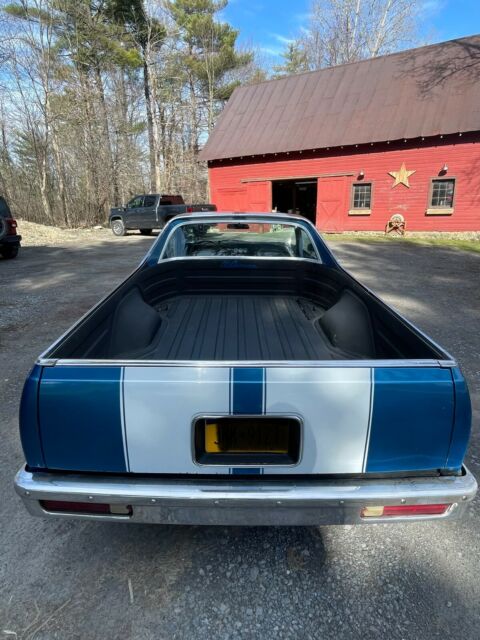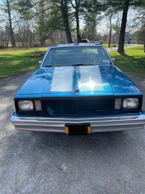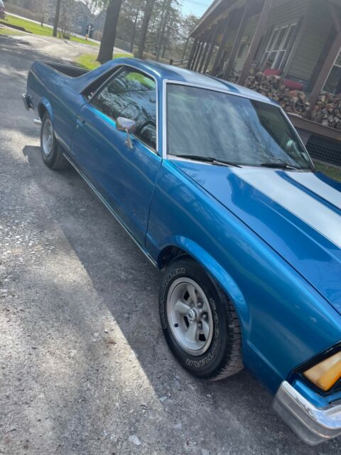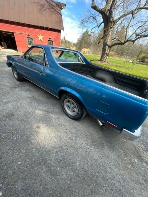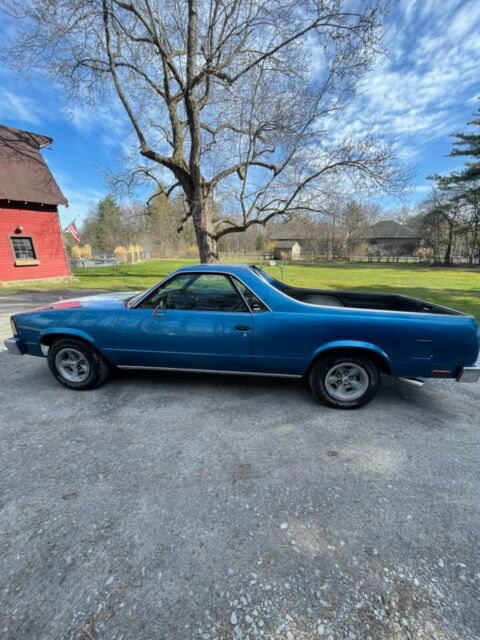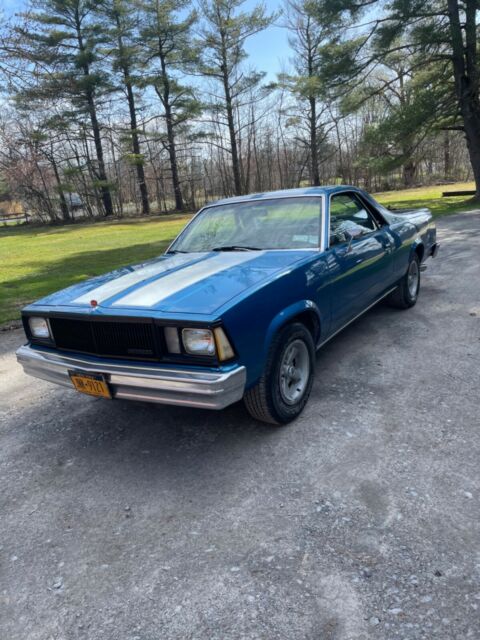 Up for sale is a 1980 Chevrolet El Camino -Blue with White Racing Stripes. -Rally Wheels with Goodyear Wrangler tires -This El Camino has a SBC 350 engine - bored .60 over with:-Mild Cam -Holly Carburetor-Short Tube Headers**Engine does burn a very minor amount of oil (valve seals). I just drove it as is since it was a minor amount. Engine is NOT a matching numbers engine since the El Camino's V8 version was a SB 305.**-Turbo 350 Transmission-3500 Stall Convertor-Dynaflow Custom Dual Exhaust System - all the way to behind the rear wheels. -B & M "Z" Gate Shifter - Automatic on the floor- Posi Rear End- 4.10 Gears- A/C does not work but the heat does. -Manual Crank Windows-Bench front seat-Newer factory carpet and also vintage "El Camino" logo floor mats.-Body is solid and in good shape and has been stored inside during the off season.**I will also include new rear Air Shocks and new Front Pads and Rotors with the car.The car runs and drives good. Many new parts in the last 2 years. It is always garaged all winter and only driven in the summer.*****AN IMMEDIATE $1,OOO.OO DEPOSIT IS DUE AND CASH DUE UPON PICK UP/DELIVERY. PLEASE DO NOT CLICK THE BUTTON IF YOU ARE NOT A SERIOUS BUYER*****This El Camino is not show quality but can be and has been driven as it is and with some minor TLC could be worth thousands more. I just no longer have the place to store it indoors.A few issues:-Reverse Lights are not hooked up to the B & M Shifter-Paint is not perfect - it does have touch ups, ding and chips (the car is 42 Years old).-Frame and floors are all solid with one small spot on the frame near the rear bumper that may need some attention at some point. (I can provide pictures to serious buyers who send me their email info)-Left turn signal switch does not auto reset after left turn-It will need new Speedometer gears now (the speedometer currently displays a few MPH off when driving)**Vehicle is 42 years old therefore it is sold in AS-IS condition with NO warranty**Additional pictures available upon request with a provided email address. I have a clean NYS title in hand. Buyer is responsible for shipping but we can assist with loading/delivery if buyer uses a Transporter Service.