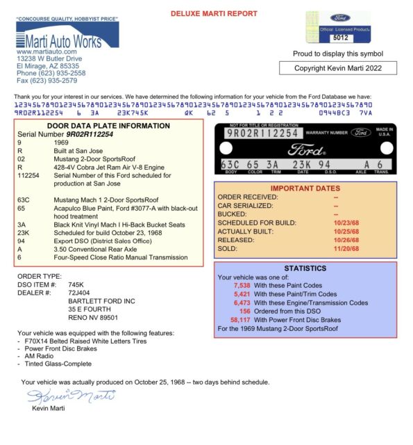 1969 Ford Mustang R CodeFactory 428 Cobra Jet 4 SpeedFactory Acapulco BlueSan Jose Built Solid Project CarLink to Pictures:https://imageshack.com/a/1new7/1You are looking at a factory 1969 Ford Mustang Mach 1 R Code 428 Cobra Jet 4 speed. The car was factory Acapulco blue with black interior. It has the wrap around shock towers and the staggered rear shocks that only the 4 speed cars received.This car is being sold as a roller project. No engine or engine parts or transmission. I do know where a RUG-AE2 transmission is for $2500. I can give the buyer the contact. However that is not included in this auction.The interior is mostly complete as you can see in the pictures. Front seats are factory Mach 1. The car is overall very solid everywhere you want it to be. Floor pans only have minor rust, frame rails front and rear are solid. Torque boxes, rockers, shock towers, trunk floors etc are all solid. It has the typical Mustang exterior metal rust like lower quarters, bottoms of the floors etc. Look at the pictures as they also serve as the description.Car has the factory dash VIN tag and the factory stampings on both aprons under the driver and passenger side fenders.The car has the disc brakes still on the front. The car does not come with a hood or shaker setup.What you see in the pictures is what you get. There is no drivetrain. Clear transferrable paperwork and Marti report will be given to the buyer. The car is being sold as is where is with no warranty. No refunds on purchase or deposit. If you make an offer or hit buy it now be ready to pay for it. That is not a chance to come and look and then make a decision. I can help with overseas shipping arragnments. Shipping to NJ ports of SC or GA ports is $600.00. Buyer must arrange the rest. If US buyer cash in hand is preferred.Car can be picked up in Beckley WV 25801. If you have questions contact 304-228-4732Thanks and Happy Bidding!