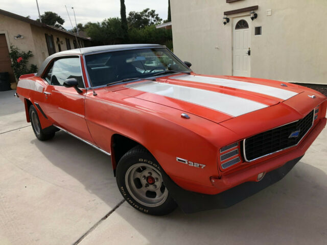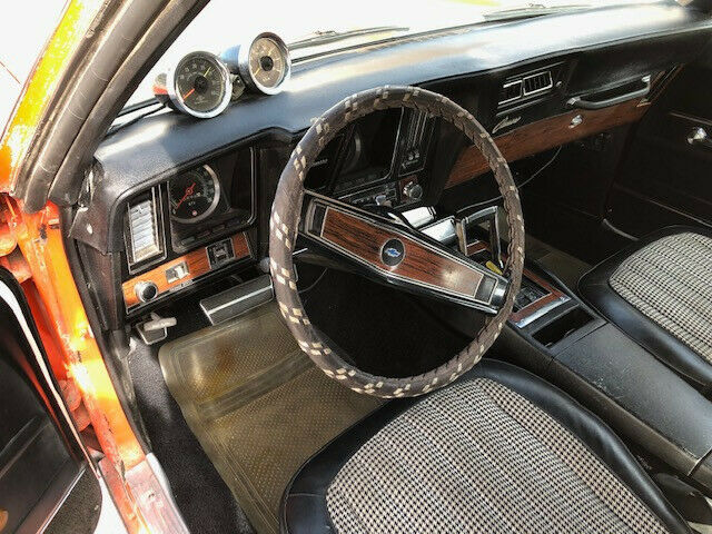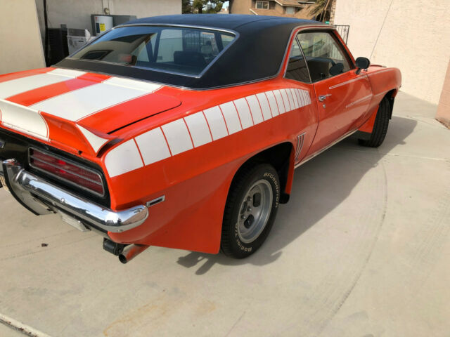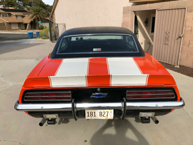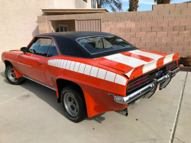 IF YOU DON'T HAVE THE MONEY DON'T BID ON THE CAR!$5,000 DEPOSIT REQUIRED IN 3 DAYS AFTER WINNING THE AUCTION. IF PAYING THE BALANCE IN CASH, PAYMENT MUST BE MADE DURING REGULAR BANKING HOURS TO INSURE THE VALIDITY OF THE CASH. AFTER ALL CASH HAS BEEN VERIFIED AS LEGAL TENDER, THE TITLE will be signed AND CAR sale WILL BE COMPLETED.Chevrolet Camaro Coupe. (2nd Owner Vehicle stored in climate controlled garage until 2015 when moved to Las Vegas and resurrected!)Original interior, carpet, vinyl top, chrome, dash, etc. Vigilight monitoring optionOriginal Custom black and white hounds tooth interior (with matching hounds tooth bag)ConsoleConsole gaugesAir ConditioningTinted glassPower disc brakesPower SteeringVinyl Top Blue light 4 channel stereo radio (replaced with new digitalmodel that looks original)Rear spoilerRear speakersRear bumper guardsRear sway barRear window defoggerOriginal 3.08 AC rear endOther UpgradesCustom Hugger Orange Paint and Z 28 striping (needs new paint)Original 1970s Ansen magnesium wheelsChevy bow tie aluminum valve coversRear mounted battery (New)Hidden Headlight optionFender flare body kitCustom front spoilerNew WindshieldNew custom dual exhaust with H pipe crossover and 1 5/8âheavy steel headersNew TiresNew 4 core radiatorNew alternatorNew A/C condenser (all O rings replaced in system. Just needs recharging.)New A/C pusher fans (for LV hot summers)High voltage ignition coilRare 1970s Radio Shack âKnight kit tachometerâRare 1970s Radio Shack âKnight kit - mile per gallon gaugeâOther Upgrades151 Cam, 10/1 pistons, new crank and rods. 4 barrel Corvetteintake manifold & Rochester carb.Custom Hugger Orange Paint and Z 28 striping (needs new paint)Original 1970s Ansen magnesium wheels Chevy bow tie aluminum valve coversRear mounted battery (New)Hidden Headlight optionUpgraded 2nd gen passenger and driver mirrors (remote).Fender flare body kitCustom front spoilerNew WindshieldNew custom dual exhaust with H pipe crossover and 1 5/8âheavy steel headersNew TiresNew 4 core radiatorNew alternatorNew A/C condenser (all O rings replaced in system. Justneeds recharging.)New AC pusher fans (for LV hot summers)High voltage ignition coilRare 1970s Radio Shack âKnight kit tachometerâRare 1970s Radio Shack âKnight kit - mile per gallon gaugeâOriginal 2 barrel Rochester and intake manifold come with car. Engine has been rebuilt with Trick Flow Aluminum Heads (65cc), 151 Cam, 10/1 pistons, new crank and rods. 4 barrel Corvette intake manifold & Rochester carb.Needs new paint job.
