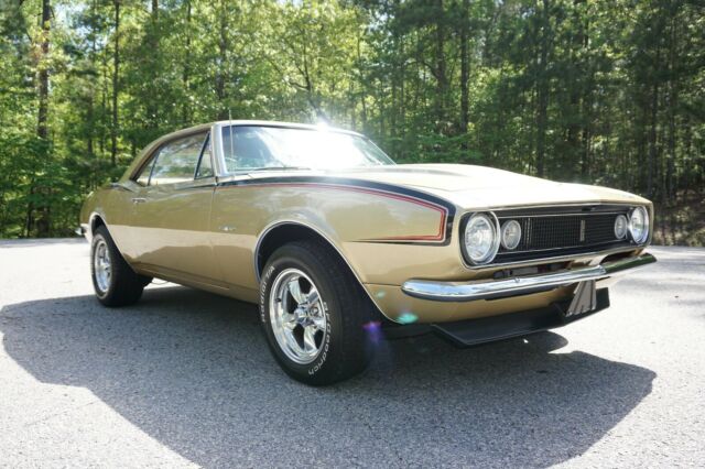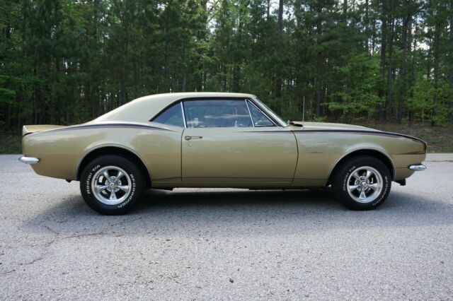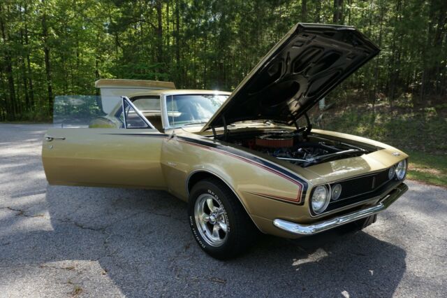 1967 Chevrolet Camaro Show CarThis 1967 Chevrolet Camaro is absolutely gorgeous in its factory "Granada Gold" with factory gold interior. The car is an older restoration but shows extremely well due to the fact that is has been garage kept and covered. This RUST FREE vehicle has won multiple awards.The motor in this 1967 Camaro is a Summit Crate 350/375 HP Engine installed in late 2018. It is brand new with only 1000 miles put on it that were mostly to car shows. - ATK Stage 2 Crate 350/375HP- 10:1 Compression- Hypereutectic Pistons- Aluminum Cylinder Heads- Hydraulic Roller Camshaft ; cam.lift 525 int/.535 exh - Cam duration @ 0.50-220 int. 224 exhThe car also comes equipped with a MSD 6AL box with MSD ready to run distributor, Speed Demon 750 Carburetor, WEIAND aluminum high flow water pump, aluminum 3 row radiator with dual electric fans, powermaster 140 amp alternator, new wire harness and new fuse box with blade style fuses. The rest of the drivetrain consists of a Bowtie Overdrive Level One 200-4R overdrive transmission. This transmission attached to a 10 bolt rear-end with 3:73 gears, allows highway cruising at low RPM's.The interior of this beauty is like brand new. There are no rips, tears or even wear marks. The dash consists of Autometer gauges (all working), wipers, heat, and a custom aftermarket stereo with Bluetooth. It is also equipped with an aftermarket steering wheel and tilt steering column.Power steering and Power Disc Brakes on the front with drums on the rear allow this classic to maneuver with ease. Not only does the beauty of this machine attract everyone's attention but also the exquisite loping sound flowing through the Hooker 2.5" coated Headers and Flowmaster Mufflers!!!This is definitely one of the best driving; handling; and riding Camaro's that I have ever owned. If you want a turnkey classic with no worries, DO NOT HESITATE, call Mike (864-993-5062) and make a deal before the auction closes!!! All offers considered! Please have funds available before bidding.This vehicle is sold AS-IS by Smith Motor Company, Inc. We do reserve the right to sell this vehicle locally prior to auction closing. All SC residents are required to pay a $500.00 sales tax per SCDMV regulations.