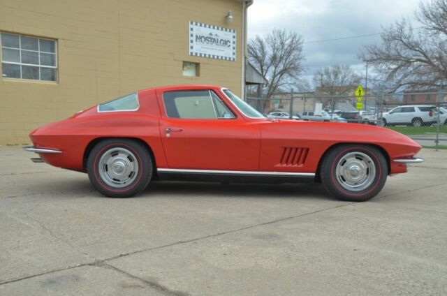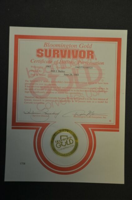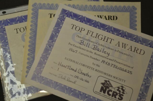 This car was built on the first week of production of the 1967 Corvette. It was ordered new at Broncho Chevrolet in Odessa, Texas by a dad as a gift for his daughters high school graduation gift. She took the car to Wyoming after graduation where it lived for several years. It then ended up in Colorado for several years before landing here in Iowa. My client (Mr. Bailey) purchased the car about 23 years ago. He had the car judged by the NCRS 3 times (2 Chapter and 1 Regional) where it received Top Flight the first time out. He also took it to Bloomington Gold and received a Survivor Certification. Very little has changed on the car since those judged events. He drove the car less than 2500 miles in the 23 years he owned it. All of the service an maintenance has been done here in my shop. The original rear calipers were removed and replaced in 2017. I gave them back to him and they are still with the car. The exhaust is original. The car was originally equipped with white stripe tires. He installed the Redline radials last fall and are like new. The car runs and drives excellent. AC blows cold. Clock tics. Original radio is in a box.The paint is 55 years old and looks it. There's been a repair (a long time ago) around the right headlight. The paint was blended and doesn't appear any panels were replaced. Paint was blended in. Other than that I believe the paint is all original. It does have several flaws and imperfections, but outside in natural light looks very nice from 10 feet. Under indoor (tube LED or fluorescent) lights the flaws and imperfections are much more obvious. The shiny parts (bumpers, moldings, lamps, handles, emblems) are all original. They have excellent fit but lack the shine of "new". This a Top Flight Survivor that with a little effort could be taken to the next level.I have the original sales invoice, protecto-plate, owners manual packet, keys, service records back to '67 and all the judging sheets and certificates. Please call Darren @ 5l5.2o2.7162 with any questions.