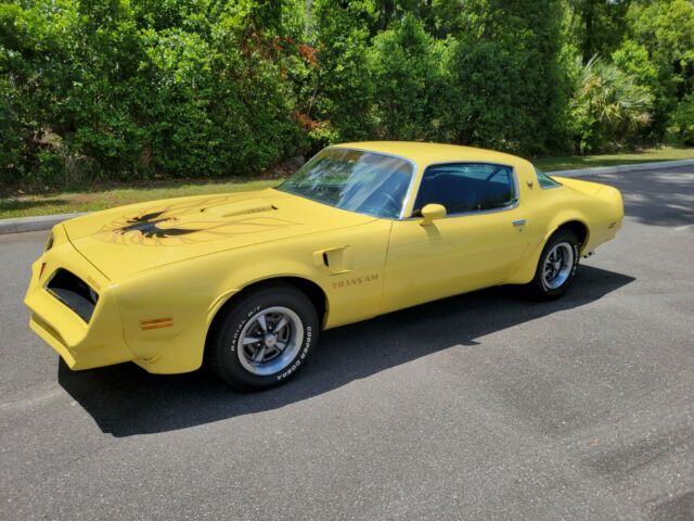 Greetings up for sale is my beloved and fully restored since 2020 is my 1977 Trans Am . It is finished in Goldenrod Yellow over black cloth and is powered by a 400ci Pontiac V8 paired with a four-speed manual transmission all number matching . Equipment includes the W72 performance package 15â³ Rally II wheels, a shaker hood, a Trans Am hood decal, air conditioning, Flowmaster mufflers, an aluminum radiator, I have the original cooper radiator . It has an upgraded rear sway bar and front upper control arms. Recent work is have included fluid changes, rebuilding the brakes and suspension, a tune-up, and replacing the tires, hoses, and drive belts ,A replacement brake booster was installed in and manual transmission was recently rebuilt with new bearings ,new clutch, pressure plate, throw bearing and resurface flywheel with 1 year warranty .My Trans Am is offered with manufacturerâs literature, a Pontiac order acknowledgement sheet, service records.The cabin features seats upholstered in replacement black cloth along with matching door panels and carpets. Equipment includes air conditioning, turned dash trim, Trans Am-branded floor mats, a center console, and a floor-mounted shifter. The a/c blow cold and the heater works ! If you have any question please feel free to call or text at 321 445 9098 . Bid with confidents i have 1005 feedback ! vehicle is located in Central Florida. "Copy and paste links below to check video" https://youtu.be/9BvB6RKoUokhttps://youtu.be/Ruf-wOY9nhI