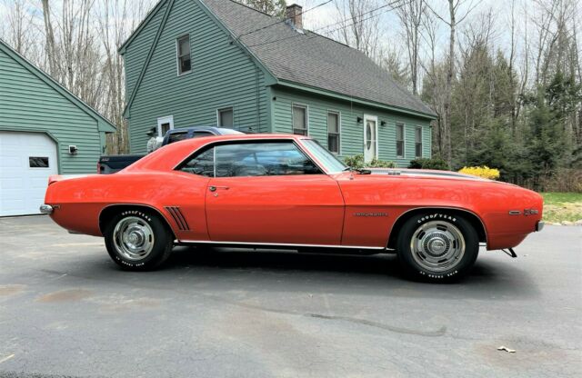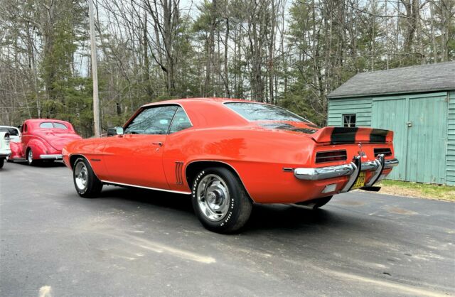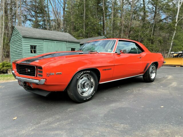 Up for sale is this very nice 1969 RS/Z/28 Camaro. This car is in mint shape like new condition. The body and paint are beautiful in it's factory born color Hugger Orange with black stripes. There are no chips in the paint or any defects. The cowl hood is a fiberglass hood. Has deluxe interior with bucket seats and console. Has tilt steering wheel with rosewood wheel. Factory am/fm radio clock remote door mirror. Power front disk brakes. Has the famous DZ/302 with factory cross ram intake runs nice. The transmission is the correct Muncie 4 speed. Factory GM 12 bolt posy rear end with disk brakes. Factory chambered dual exhaust sounds awesome. Has factory 15" rally wheels with Goodyear Wide Tread GT bias ply tires. The only paperwork to the car is the original manual guide to new GM ignition lock system paper. I checked are the drivetrain numbers and they are matching. I also have check all codes date correct as well. I refuse to pay some to tell me what I have when I already know!! I will take a part trade on a must be nice am fussy 1966 Chevelle SS or a nice 1957 Chevy Hardtop. Please no even trades. Feel free to send inspector or call if have any question on the car. Car comes with a Maine registration and a Bill of sale!! Cash Money Please. Thanks for looking. 207-807-6722