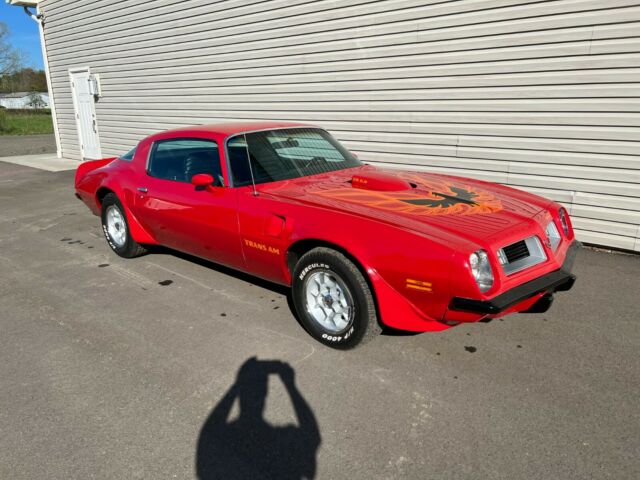1975 Pontiac Trans Am. Real Trans Am with build sheet. Original red with black interior car. Body is rust/rot free. Has good straight body panels. Floors and trunk are really nice also. Drivers floor pan has small area where metal is rusted. Has 400V8(6.6L) with automatic trans and posi rear. Engine was rebuilt 5yrs ago. Runs and drives great. Car runs straight going down the road. Paint is fairly new and looks great. Car is in Good driver quality condition. Car is not show perfect, but can hold its own. No known dents in body or scratches in paint. All guages and lights seem to be working. Needs a stereo. No stereo in car at this time. Nice complete car with next to nothing missing from it. Weatherstripping is all newer as well. Glass is pretty good. Rear glass has some scratching, but the rest seems fine. Was told interior was all original except front seat covers and carpet. Tires are new. Great driving and sounding car that attracts a ton of attention. Ask any and all questions prior to purchasing vehicle. I am a licensed NYS Dealer. NYS buyers will have to pay sales tax and inspection fee at time of vehicle transfer. I do not collect tax for any other states. There is no added paperwork fees also. Buyers are responsible for finding their own transporter.Financing available with approved credit and down payment.