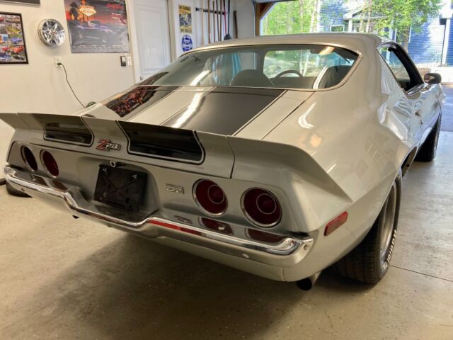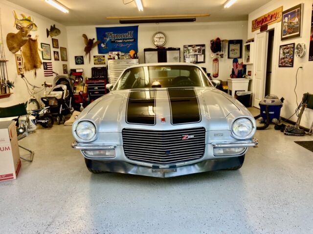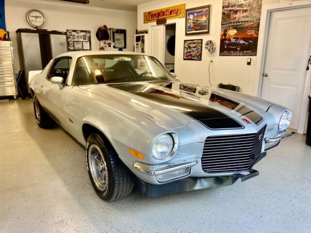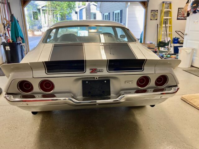 1973 CAMARO LT - SPLIT BUMPER DRESSED AS Z28 WITH ALL BADGES. 350 MOTOR - REBUILT WITH A MILD CAM . 4 BARRELL CARB . NEW ALUMINUM RADIATOR/SHROUD STAINLESS CERAMIC COATED HEADERS-DUAL EXHAUST - CALIFORNIA STYLE STAINLESS MUFFLER CHROME TIPS BRAND NEW STAINLESS GAS TANK AUTO - CONSOLE STAPLE SHIFTER INTERIOR DASH HAS BEEN COMPLETELY REDONE LIKE NEW INCLUDING CUSTOM HEADLINER FRONT SUSPENSION HAS BEEN REDONE -NUMEROUS NEW PARTS -NEW AIR SHOCKS -INTERIOR DOOR PANELS-UPPER AND LOWER- REPLACED -CUSTOM BLUE TOOTH STEREO WITH NEW SPEAKERS -CAR IS VERY CLEAN IN AND OUT RUNS EXCELLENT! JUST INSTALLED NEW CUSTOM BILETT GRILL FACTORY CORRECT RIMS- TIRES ARE IN GREAT SHAPE 60'S ALL THE WAY AROUND P215 60R 15s IN THE FRONT AN P245 60R 15s IN THE REAR 10 BOLT REAR CORTEZ SILVER WITH BLACK METAL FLAKE IN THE STRIPES- HAS SOME SMALL BLEMISHES IN PAINT BUT PRESENTS WELL OVER ALL. 7 OUT OF 10 INTERIOR 8 OUT OF 10. SUPER CLEAN UNDER CARRIAGE. POWER BRAKES- SLOTTED DISCS UP FRONT DRUMS IN REAR POWER STEERING ORIGINALLY AN A/C CAR - NOT CURRENTLY HOOKED UP - NO COMPRESSOR. TILT WHEEL DRIVES EXCEPTIONALLY NICE - VERY TIGHT. SPRINGS IN TRUNK NEED REPLACING- HAVE NEW ONES IN THE RAPPER READY TO BE INSTALLED. NEEDS HORN COUPLE OF SMALL TEARS IN REAR SEAT REALLY GETTING HARDER AND HARDER TO FIND IN THIS CONDITION CALL ME TO SET A TIME TO SEE. $31,900 Pete 603-498-9798