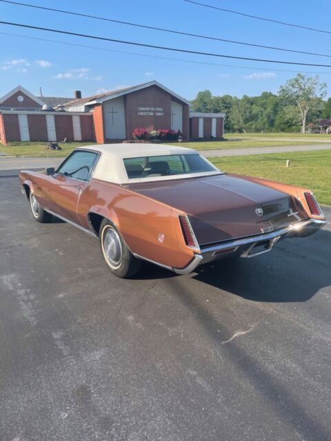 Up for sale a Classicâ69 Eldorado recognized as original mileage! This was GMâs upscale entry level 2 door full size car with front wheel drive! She has been unmolested. Original Nutmeg Firemist Metallic paint. 472 V8 , 375hp rating with a load of torque and a smooth quiet operation mated with the standard 3 speed automatic transmission. The stock Rochester 4 bbl. Carburetor works as it should, automatic choke applies when necessary and kicks down like it should. She always starts by the second crank, most of the time the first weather permitting. The glass, chrome, and interior in in excellent shape, no rips or tears in the seats or dash. The things that do not work but can be fixed- the Am/Fm radio and power antennae and Iâm not sure the cruise control works. The AC works but could be recharged and converted over. Being original paint, it has knicks, dings, scuffs, etc. for being an unmolested 53 year old car definitely worthy of a future repaint. I just replaced the proportion valve, master cylinder, brake drums and shoes as well as wheel cylinders. The power windows and locks work as they should as well as the wipers, exterior lights and signals. The power seat works great and so do the rear leveling air shocks work as well as they should. I have the rear pumped them all the way but you can let air out as you so choose if you wanted the rear squat. I have also replaced the battery . I also have had complete tuneup and oil change and filters replaced. Tires and exhaust are in excellent shape. The car is solid through and through, it does not rattle or shake. No leaks, rust, or bondo. I can take more pics if needed. Independent inspections are welcome.Text me at 302-745-3282 with any questions or email. Thanks for looking. Jeff